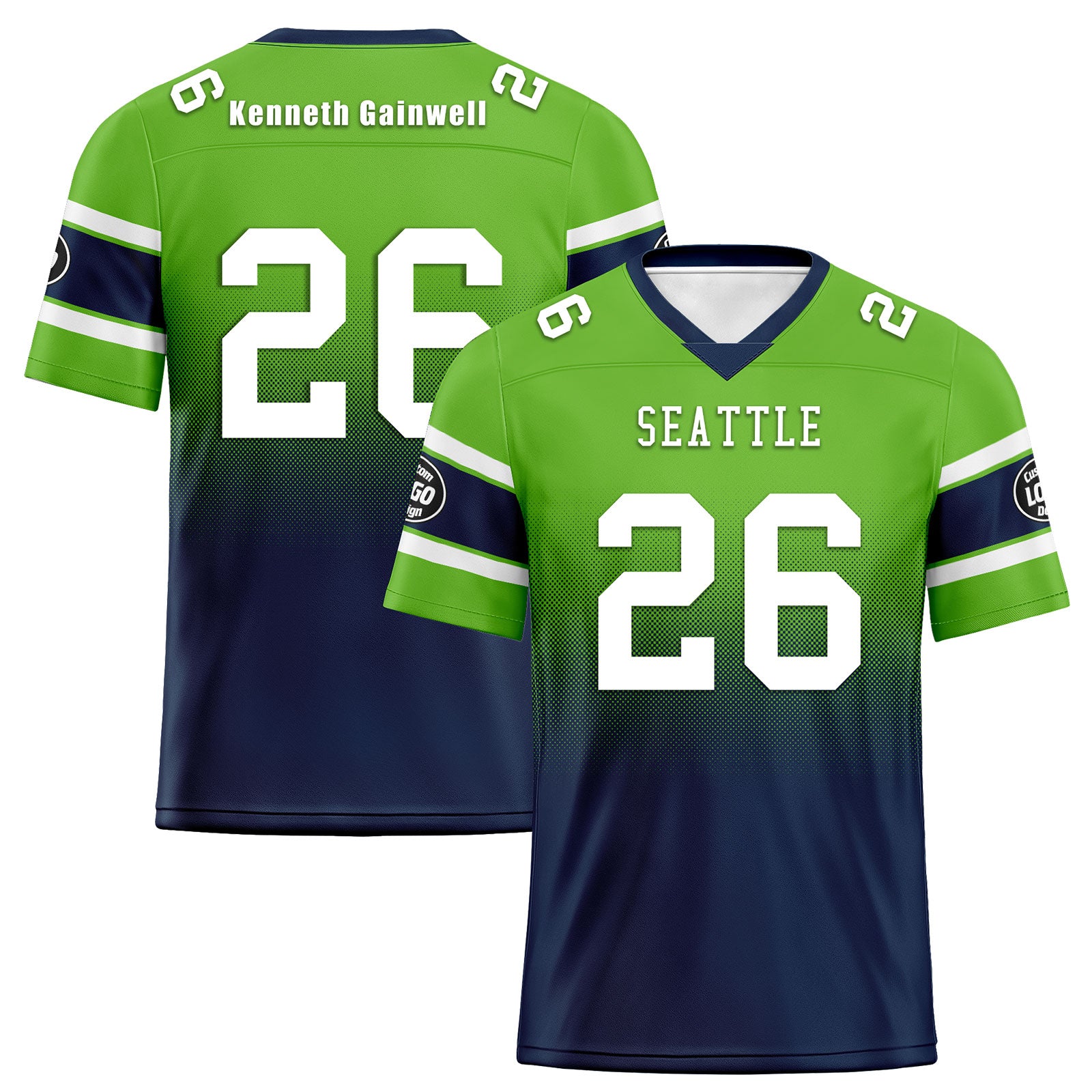 Custom Green Blue Seattle Personalized Authentic Football Jersey FBJ02-D020249-27
