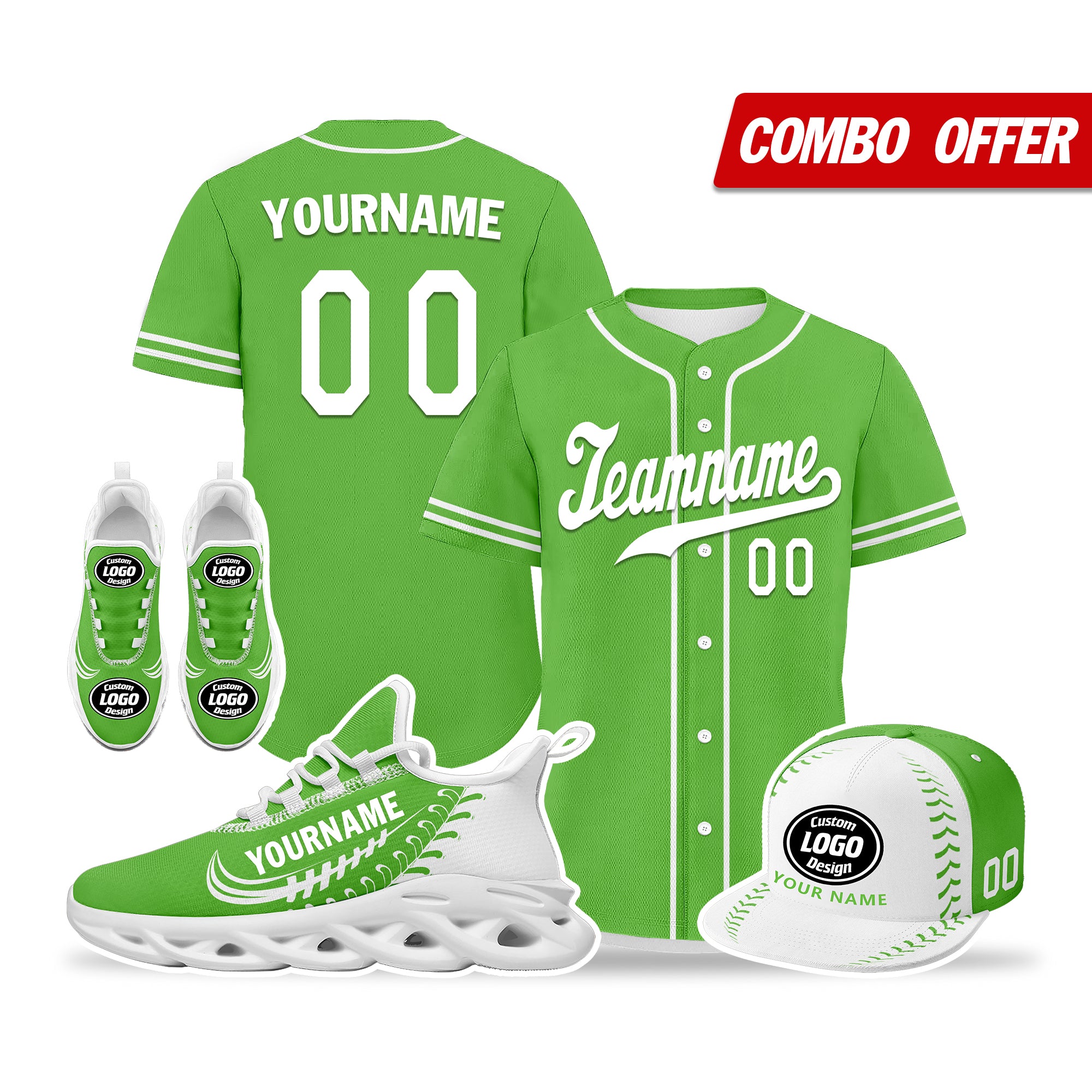 Elevate your fashion game with this exclusive combo deal featuring a custom hat, a pair of custom sneakers, and a custom jersey!