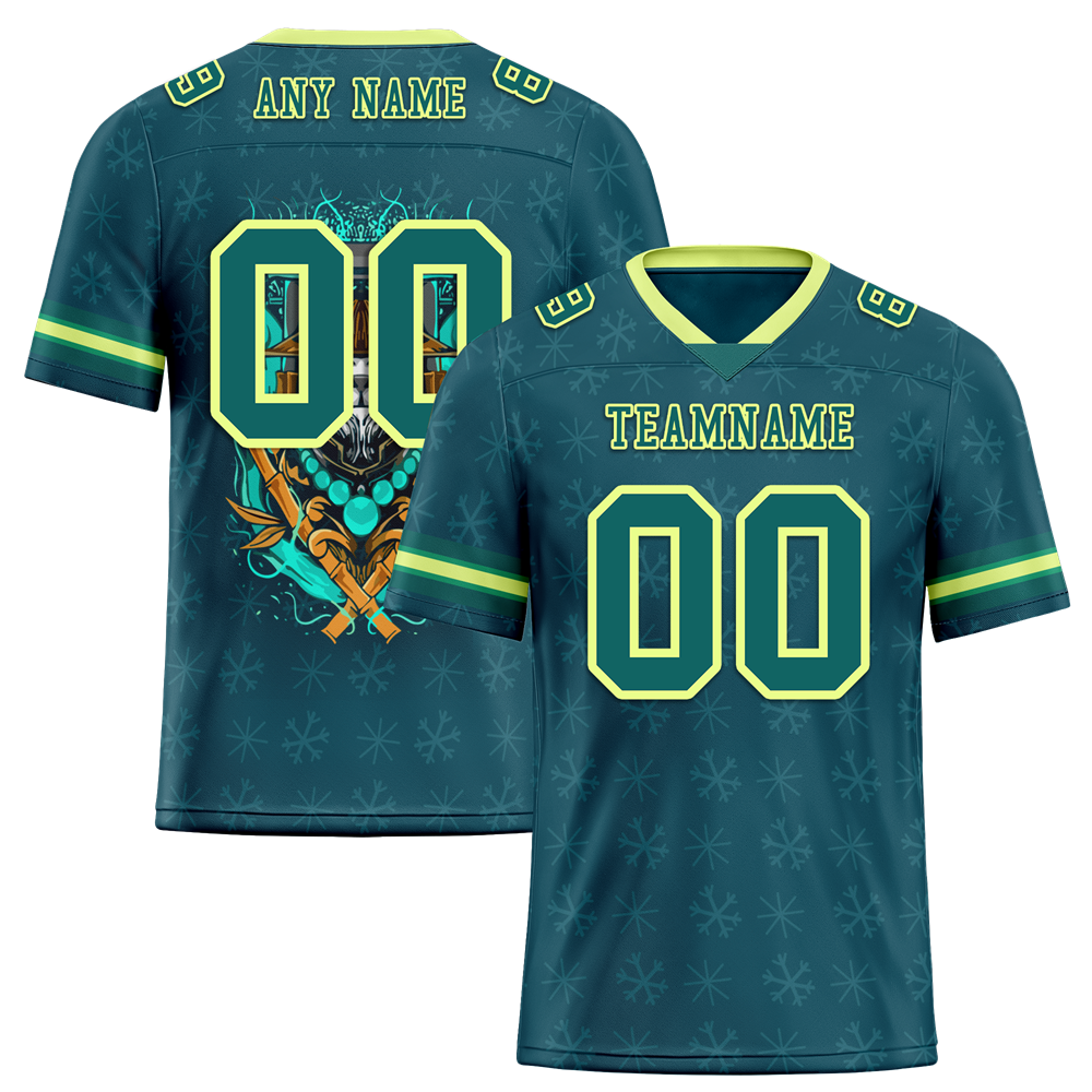 Custom Green Skull Fashion Aqua Personalized Authentic Football Jersey FBJ02-bc0fbb7