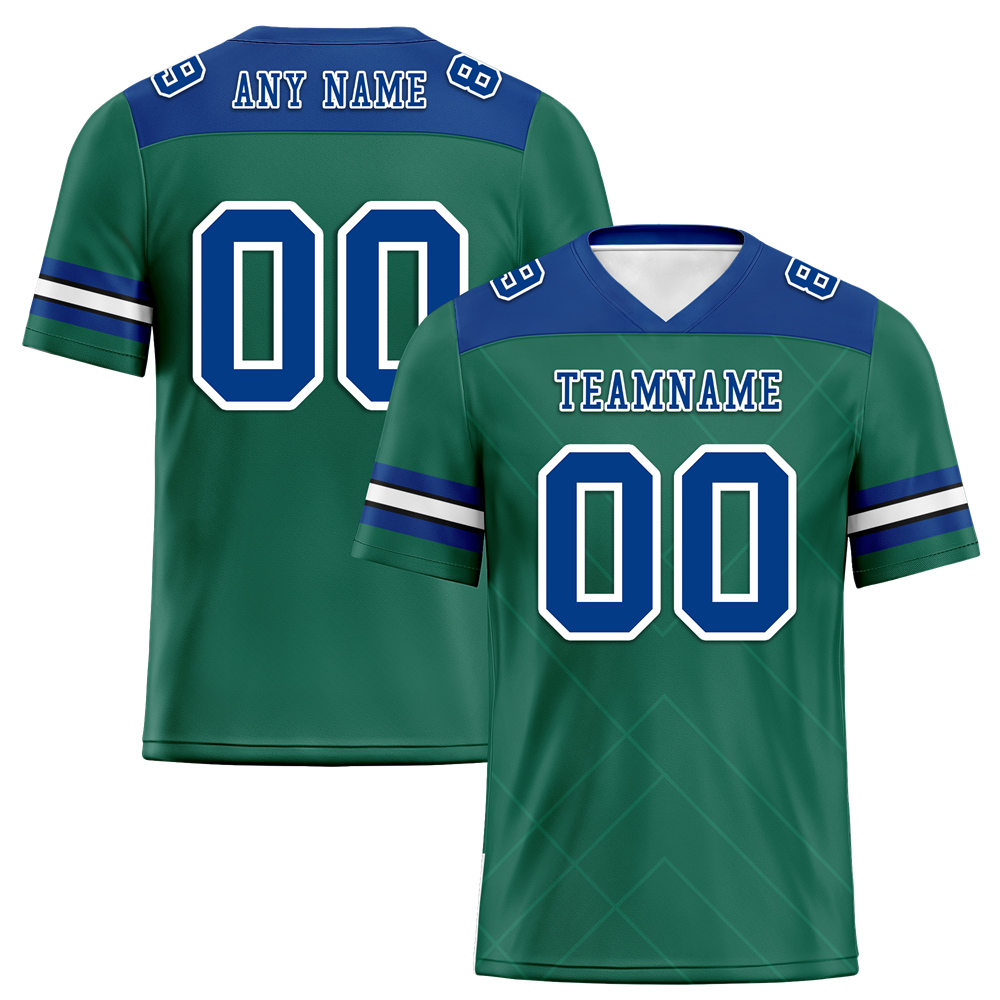 Custom Green Sleeve Stripes Blue Personalized Authentic Football Jersey FBJ02-bc0f0ec