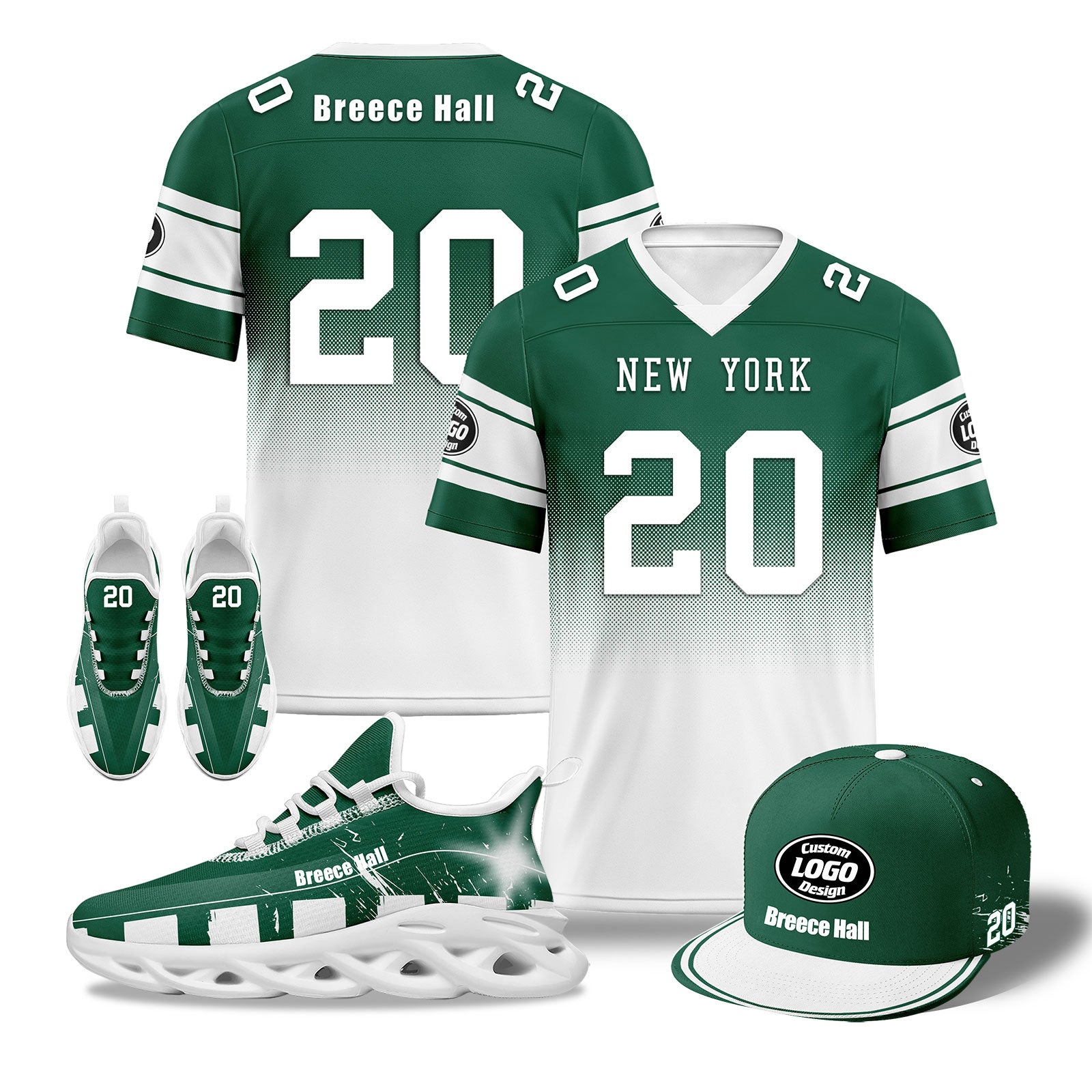 Custom Green White New York Football MaxSoul Shoes and Hat Combo Offer Personalized Combo ZH-D020268-28