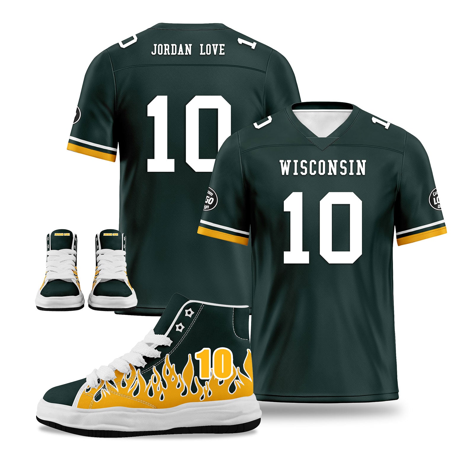 Custom Green Yellow Green Bay Football Jersey and Firesoul Sports Shoes Combo Offer Personalized Combo ZH-D020273-13