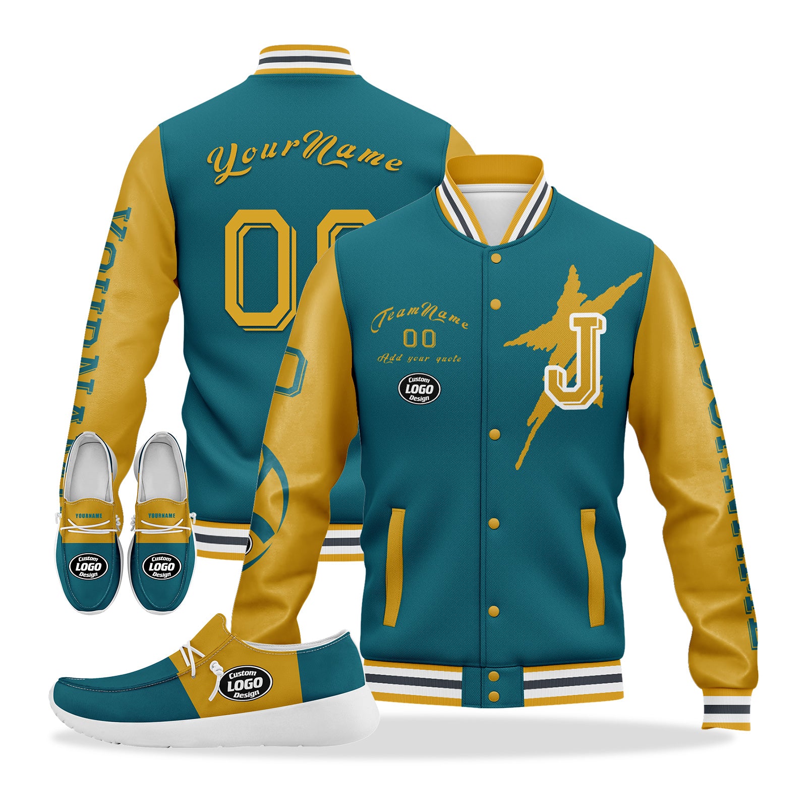 Custom Green Yellow Jacksonville Jacket and Sports Shoes Combo Offer Personalized Combo ZH-D020294-16