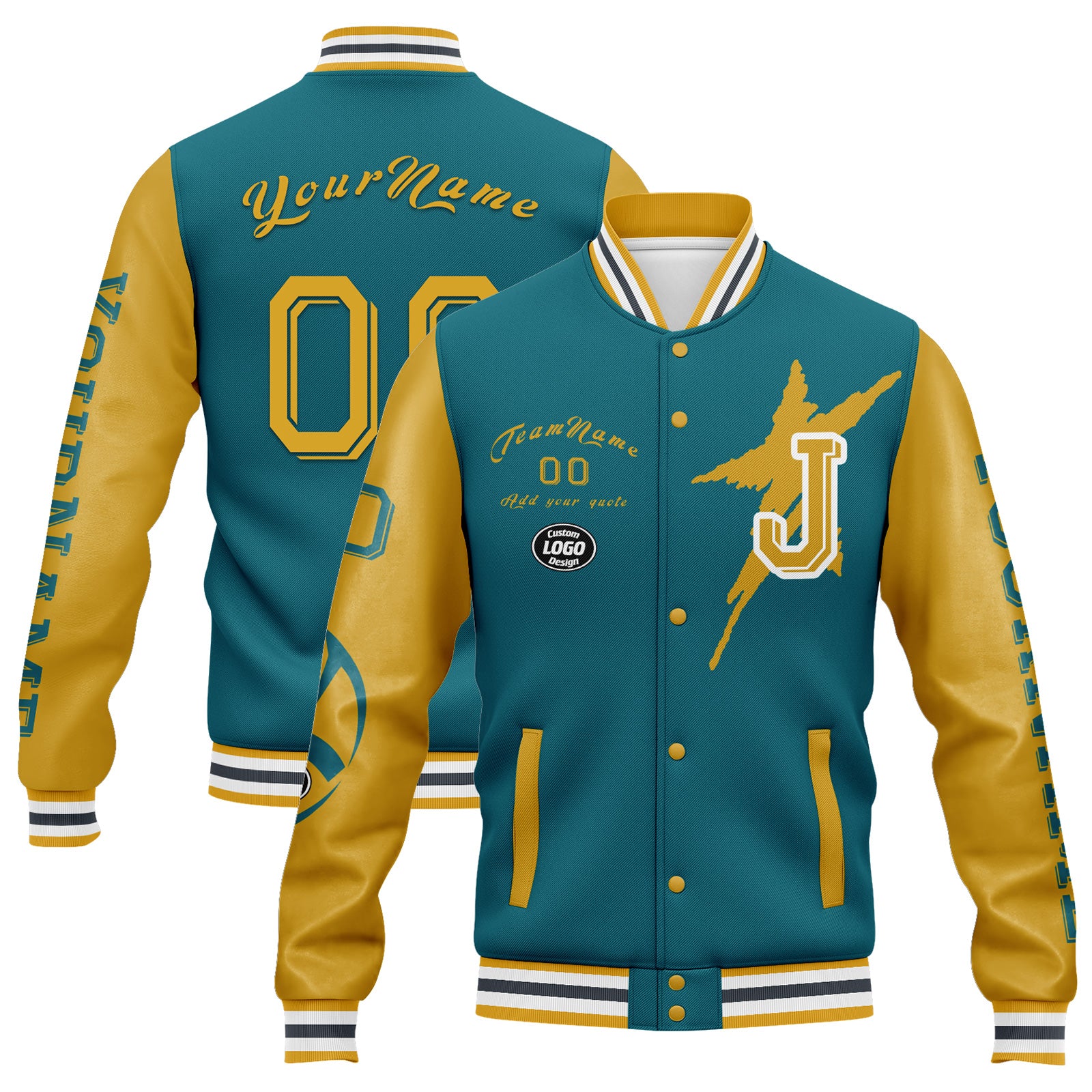 Custom Green Yellow Jacksonville Jacket Bomber Full-Snap Varsity Letterman Personalized Jacket FZ005SX-D020290-16