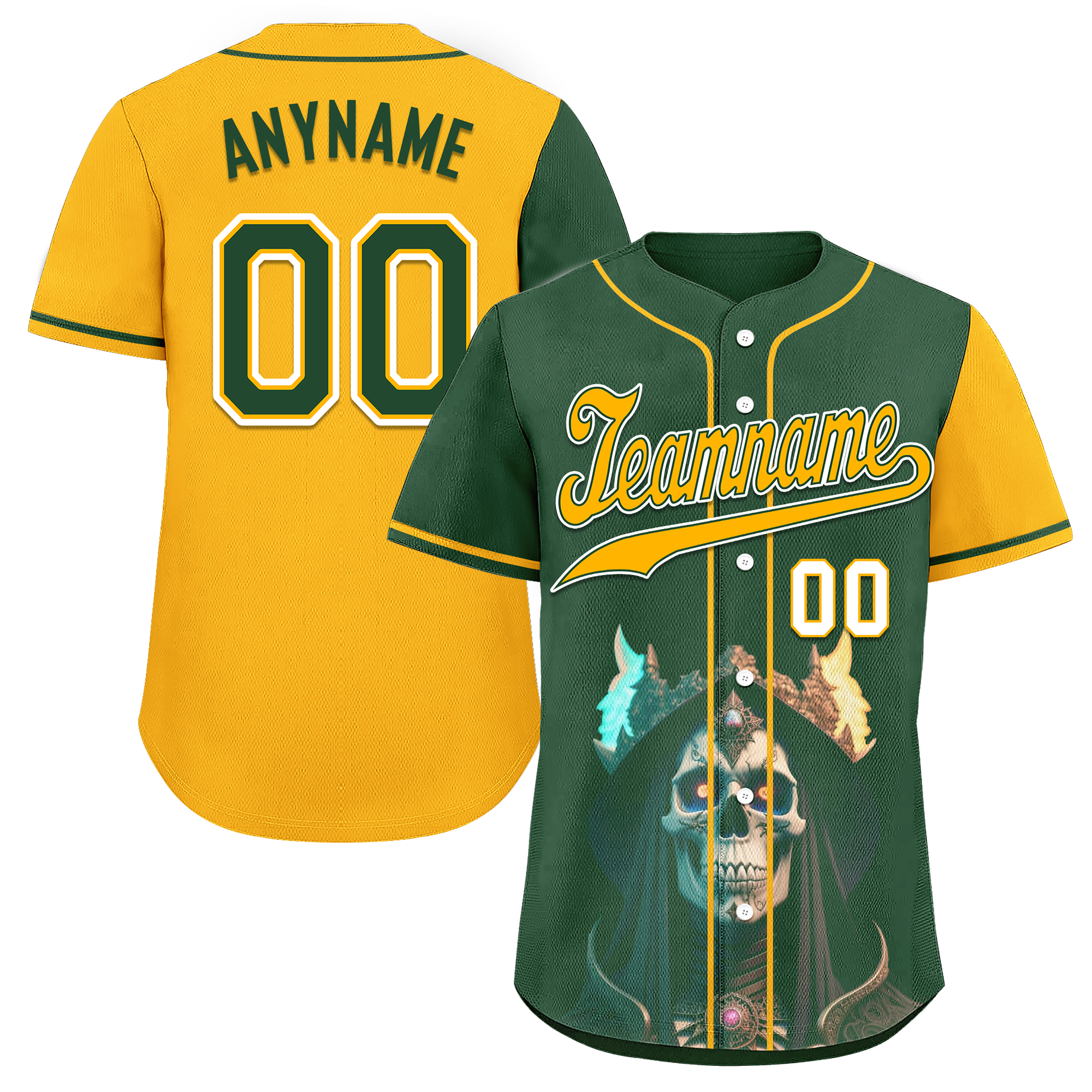 Custom Green Yellow Skull Fashion Personalized Authentic Baseball Jersey BSBJ01-D017154
