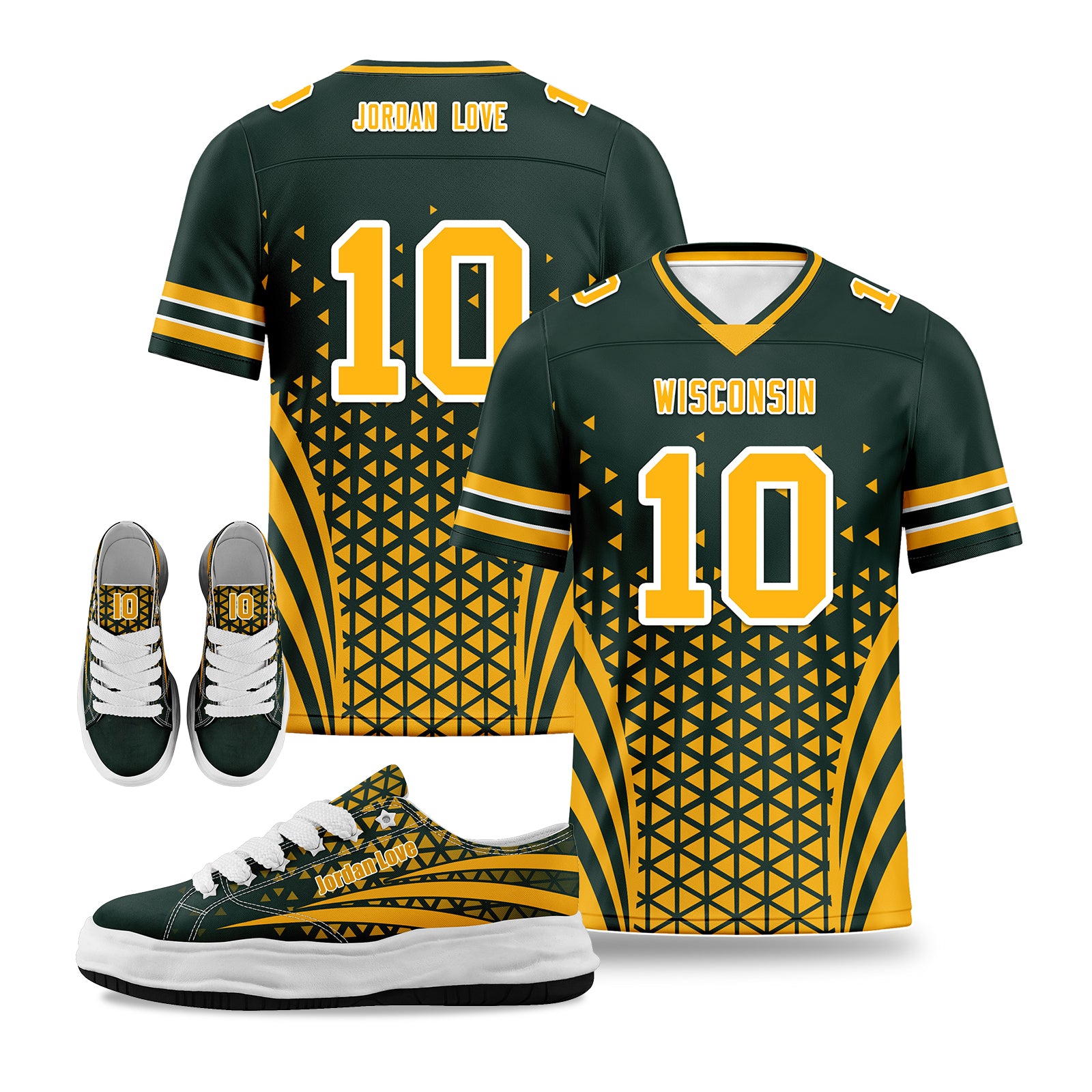 Custom Green Yellow Wisconsin Football Jersey and Sports Shoes Combo Offer Personalized Combo ZH-D023031-13