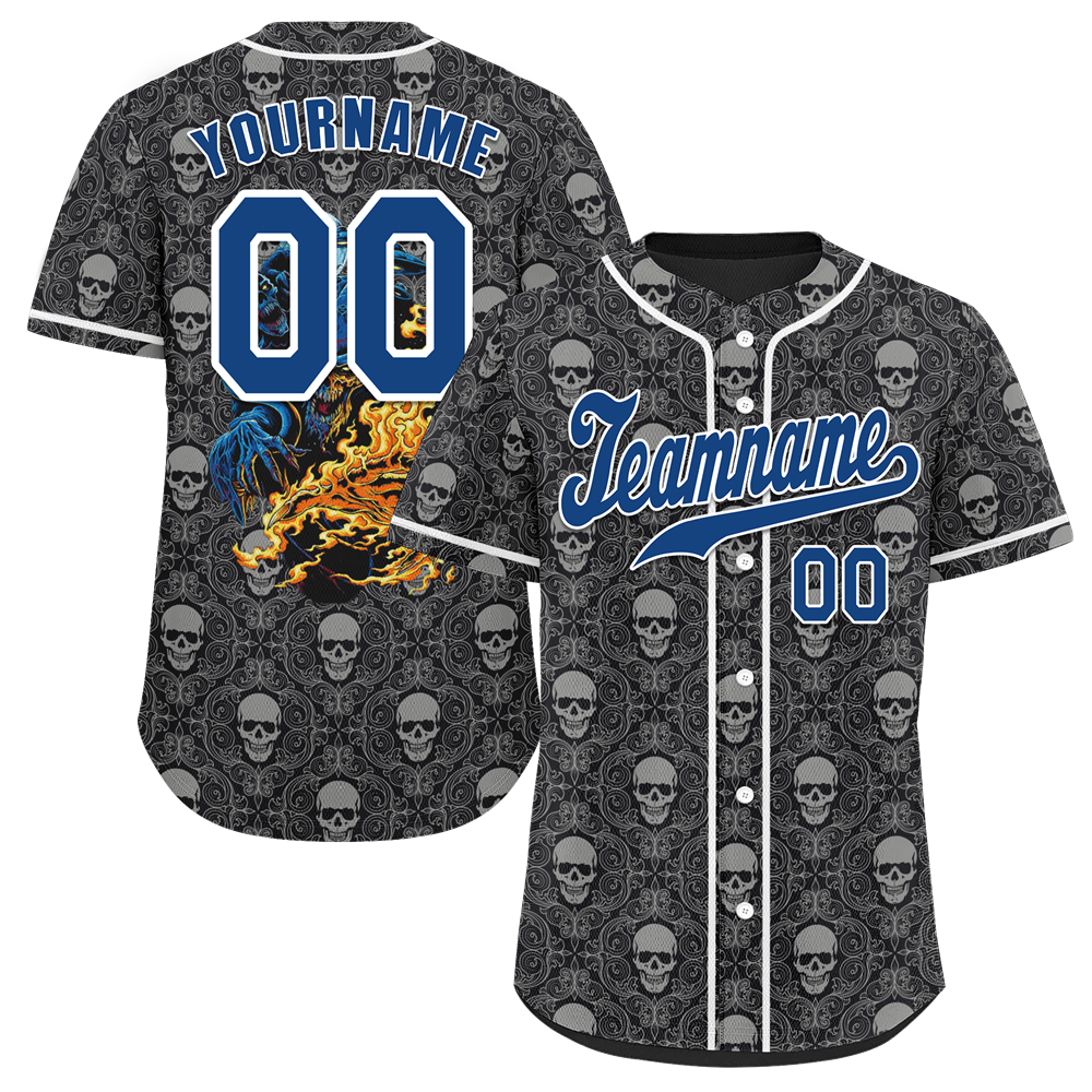 Custom Grey Skull Fashion Blue Authentic Baseball Jersey BSBJ0a-bc0fb9f