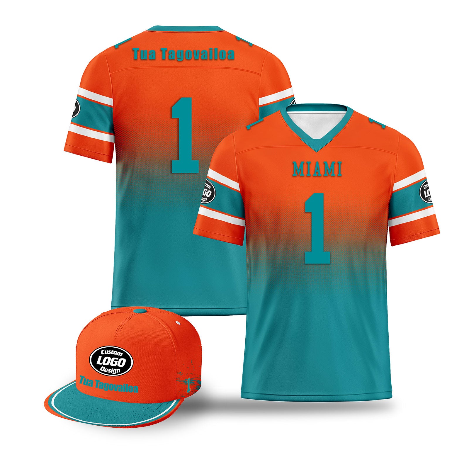 Custom Orange Blue Miami Football Jersey and Hat Combo Offer Personalized Combo ZH-D020326-24