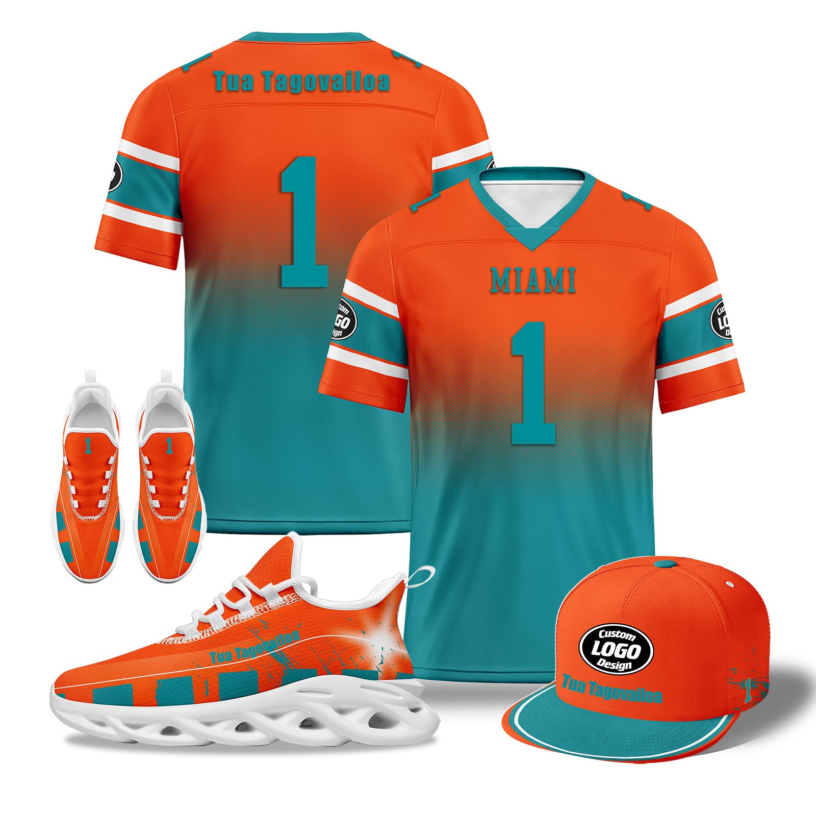 Custom Orange Blue Miami Football MaxSoul Shoes and Hat Combo Offer Personalized Combo ZH-D020268-24