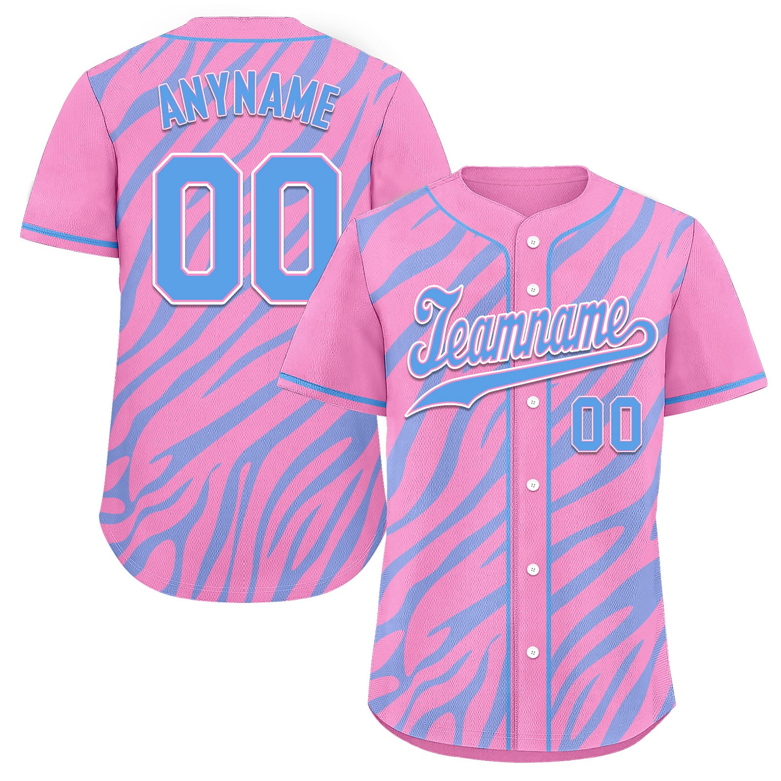 Custom Pink Blue Zebra Pattern Personalized Authentic Baseball Jersey BSBJ01-D020201-18