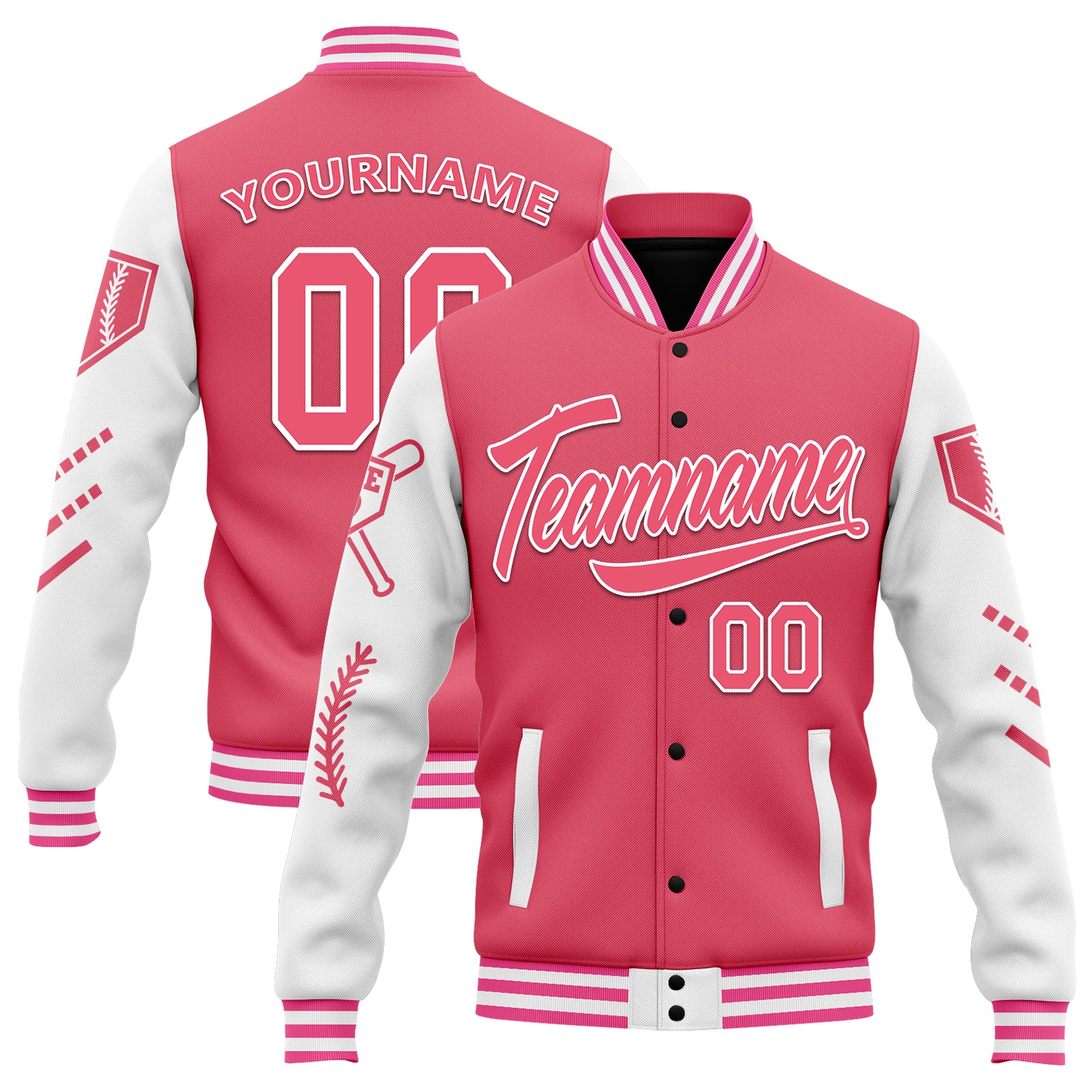 Custom Pink White Raglan Sleeves Jacket Bomber Full-Snap Varsity Letterman Personalized Jacket FZ005-D023002-7