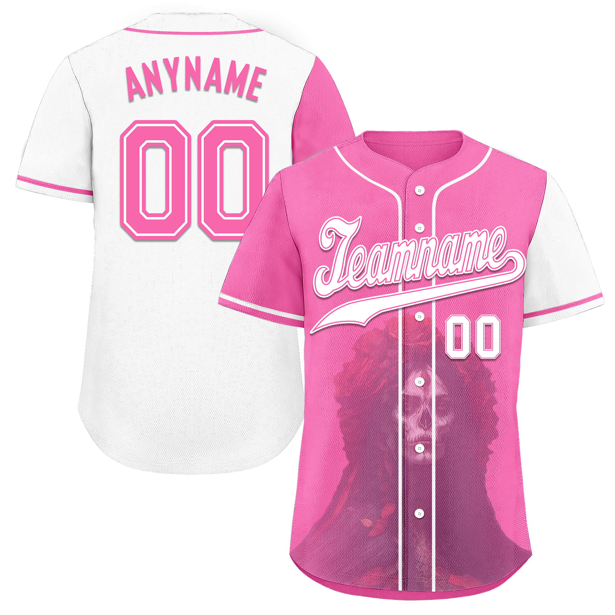 Custom Pink White Skull Fashion Personalized Authentic Baseball Jersey BSBJ01-D017151