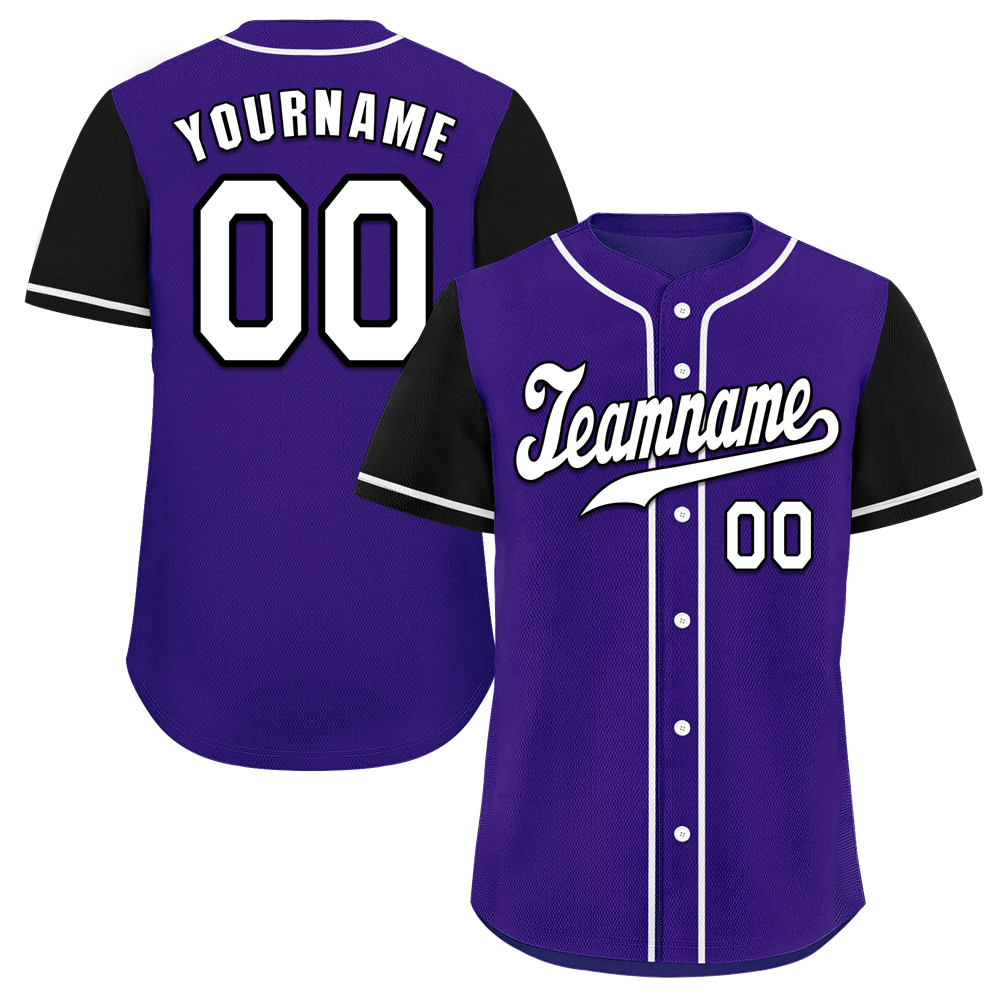 Custom Purple Black Raglan Sleeves White Authentic Baseball Jersey