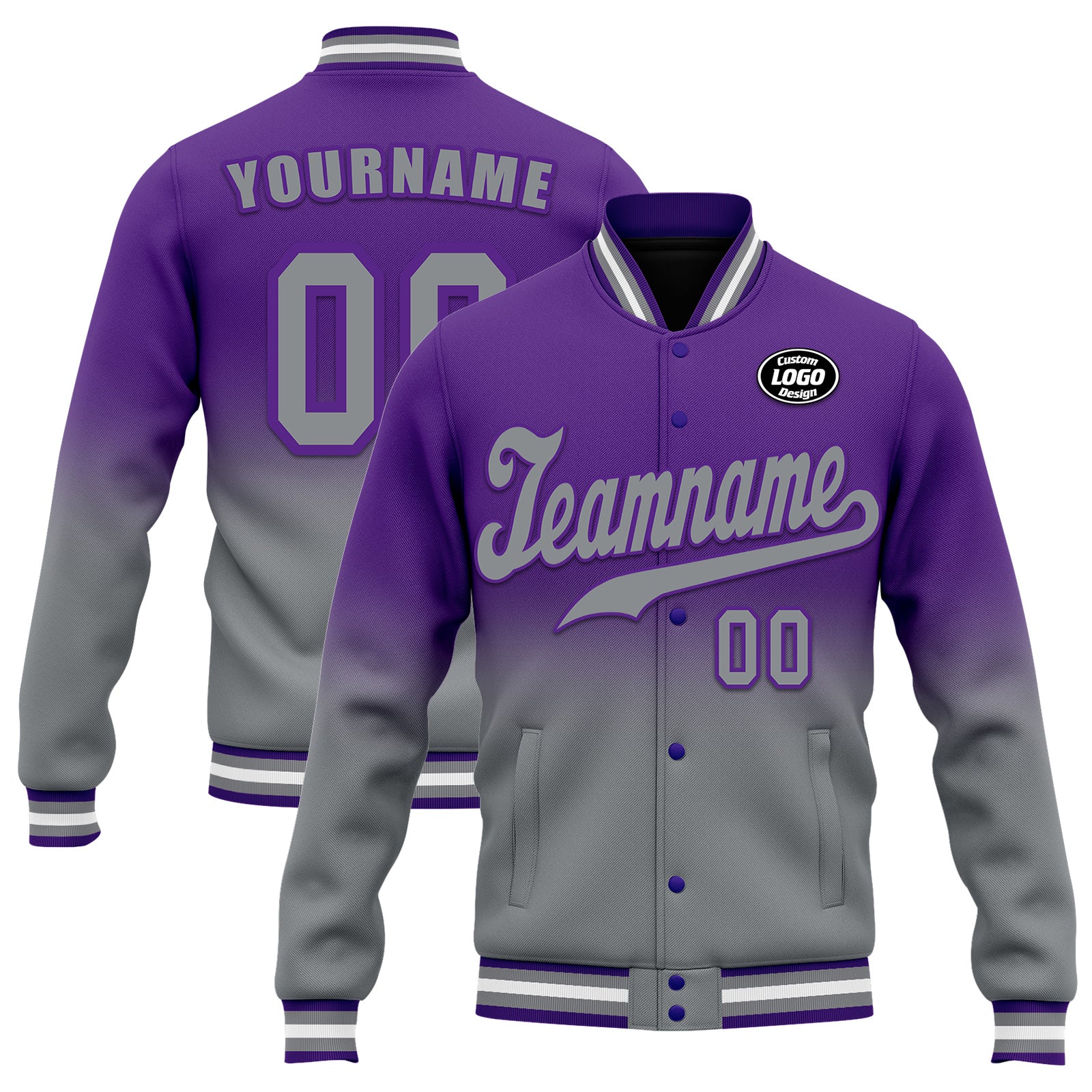 Custom Purple Gray Fade Fashion Jacket Bomber Full-Snap Varsity Letterman Personalized Jacket FZ005-D020229-13