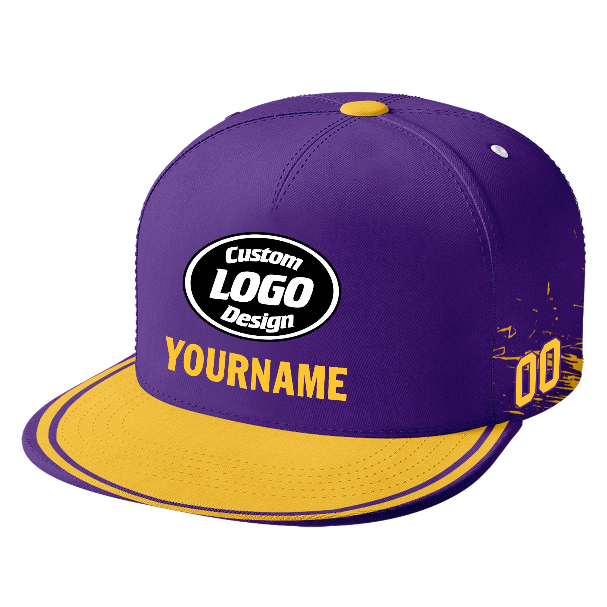 Custom Purple Yellow Minnesota Hat Sport Design Cap Stitched Adjustable Personalized PR067B-D020261-17