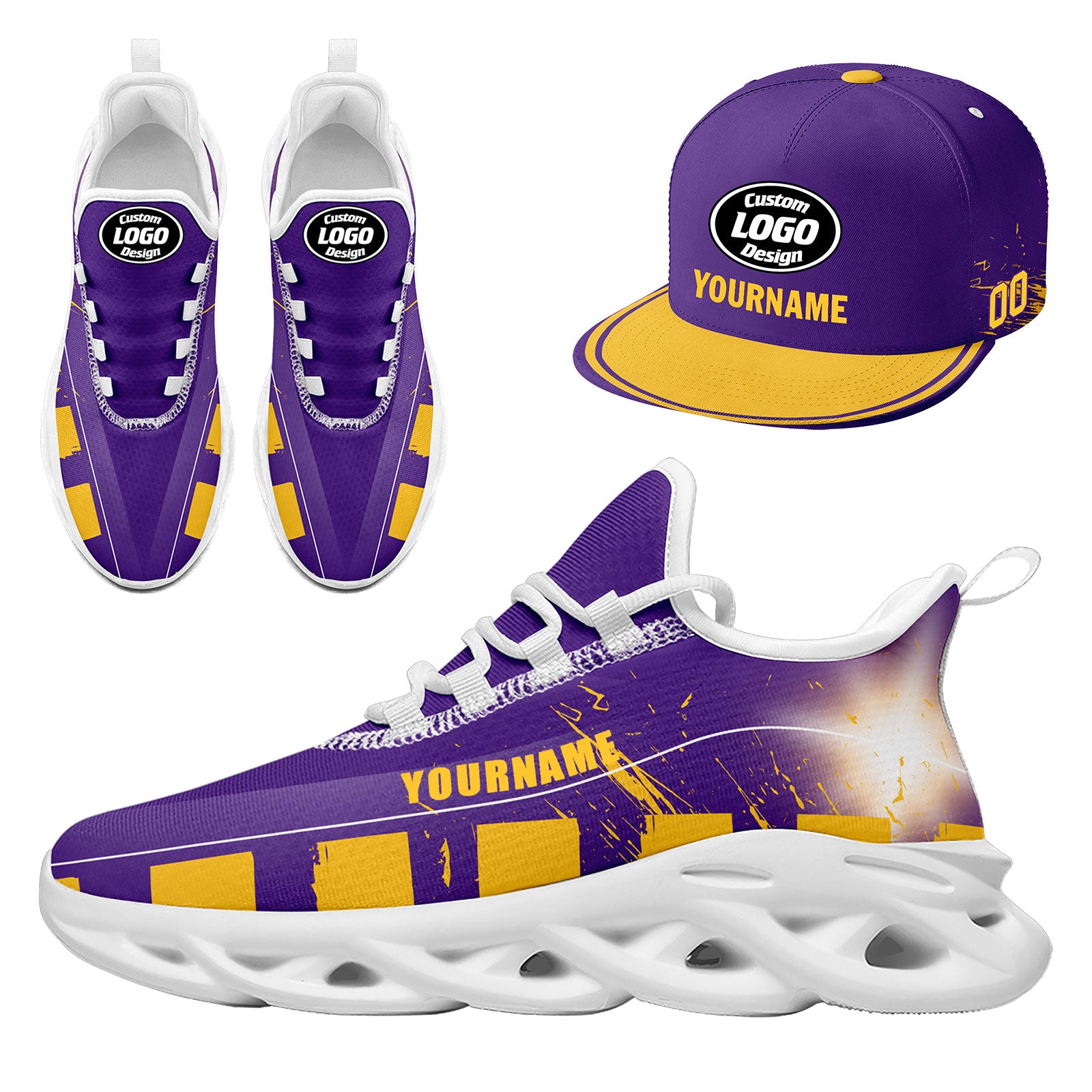 Custom Purple Yellow Minnesota MaxSoul Shoes and Hat Combo Offer Personalized Combo ZH-D020264-17