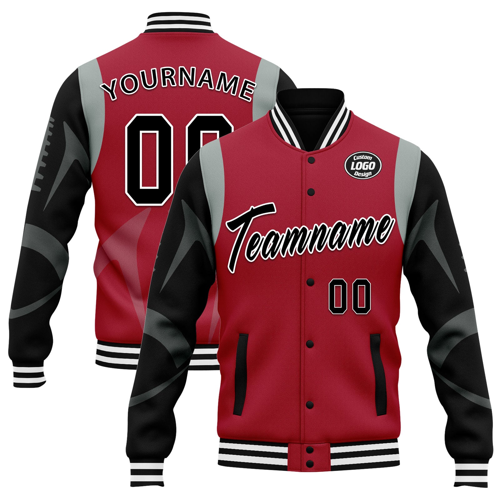 Custom Red Atlanta Jacket Bomber Full-Snap Varsity Letterman Personalized Jacket FZ005-D025004-2