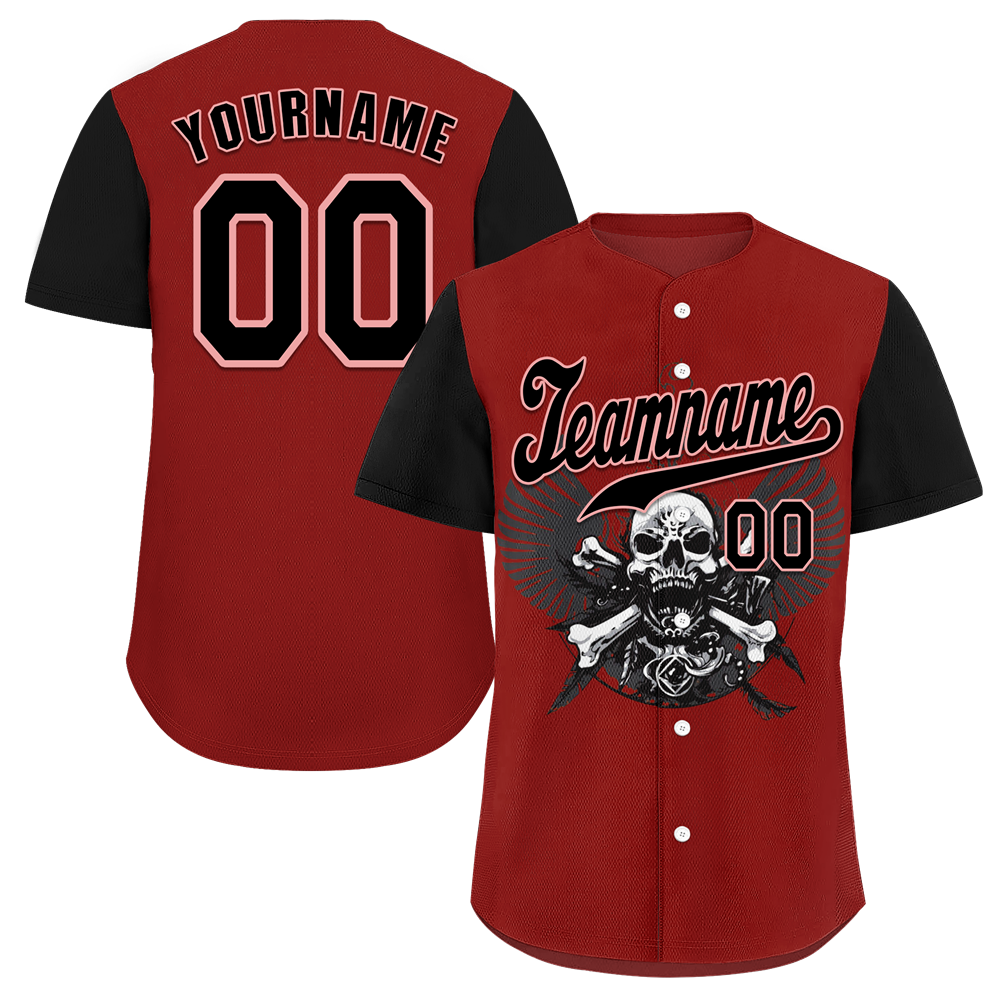 Custom Red Black Skull Fashion Black Authentic Baseball Jersey BSBJ0a-bc0fb9e