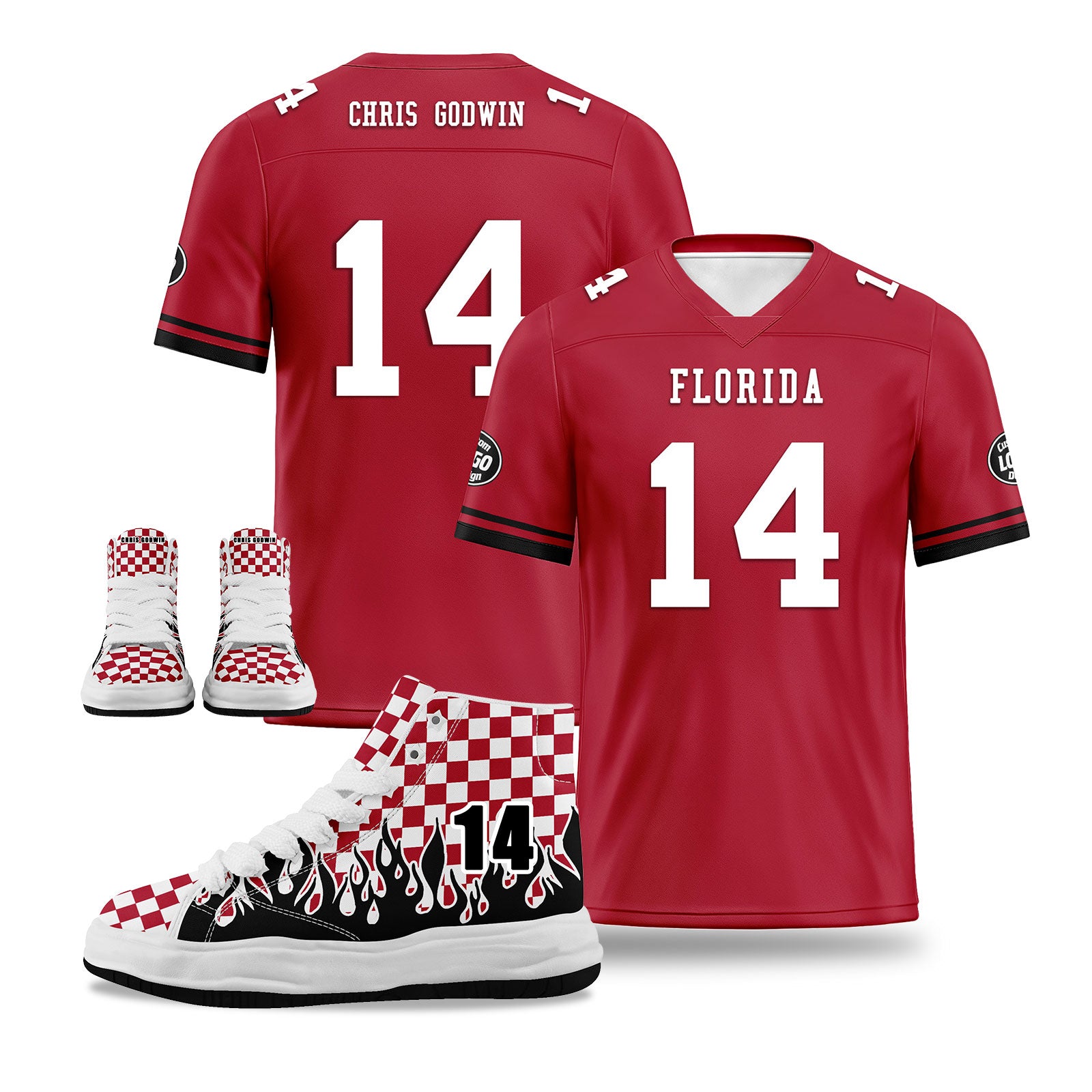 Custom Red Black Tampa Bay Football Jersey and Firesoul Sports Shoes Combo Offer Personalized Combo ZH-D020273-29