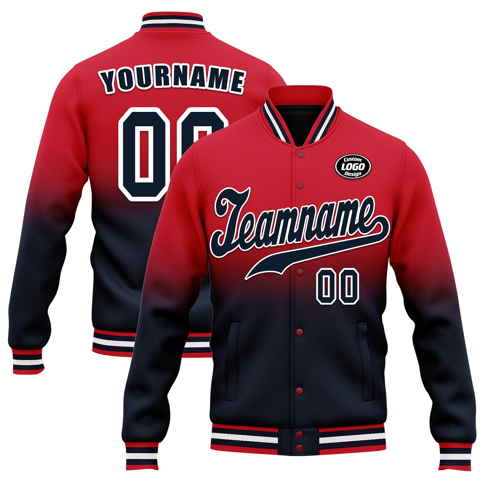 Custom Red Blue Fade Fashion Jacket Bomber Full-Snap Varsity Letterman Personalized Jacket FZ005-D020229-22