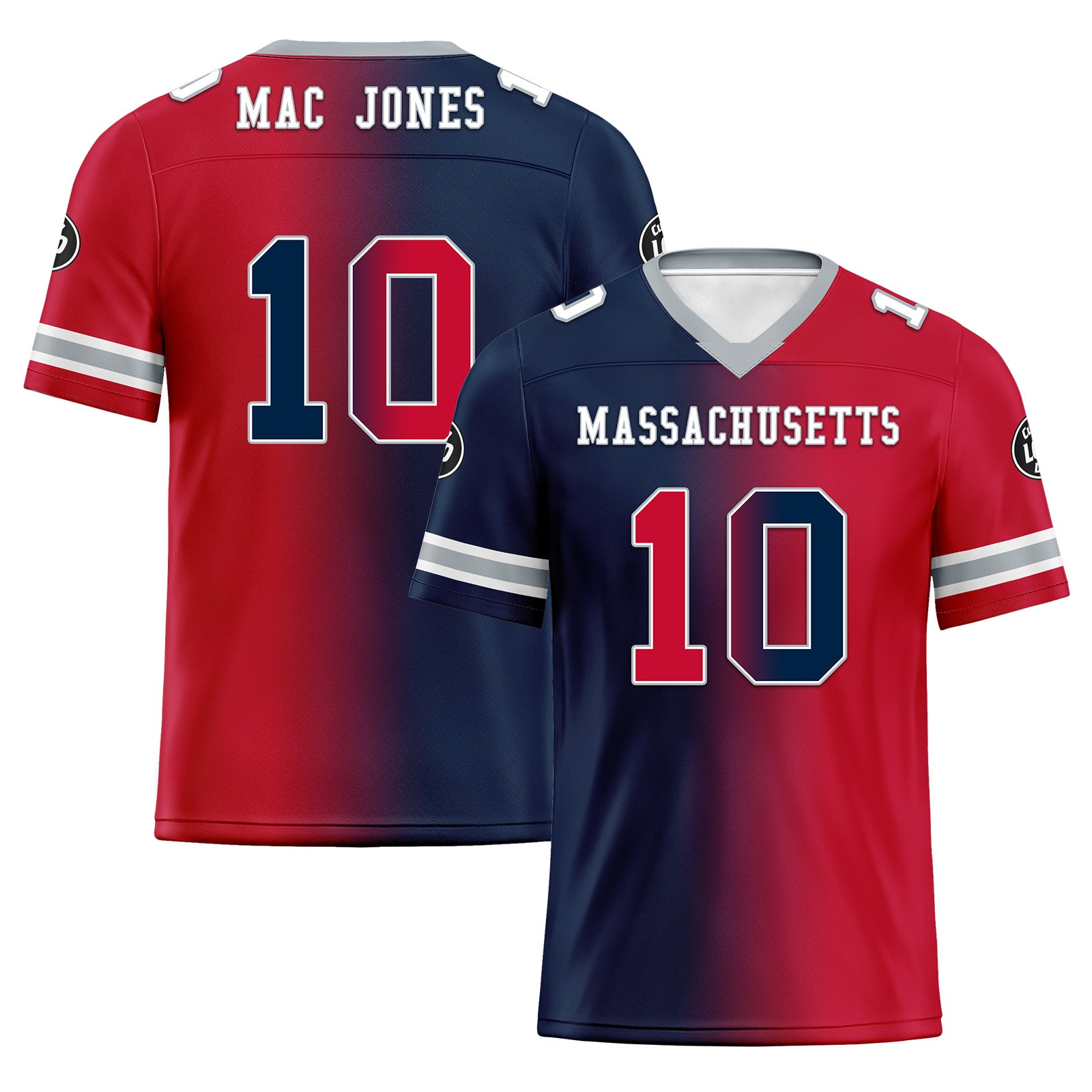 Custom Red Blue Massachusetts Personalized Authentic Football Jersey FBJ02-D028017-29