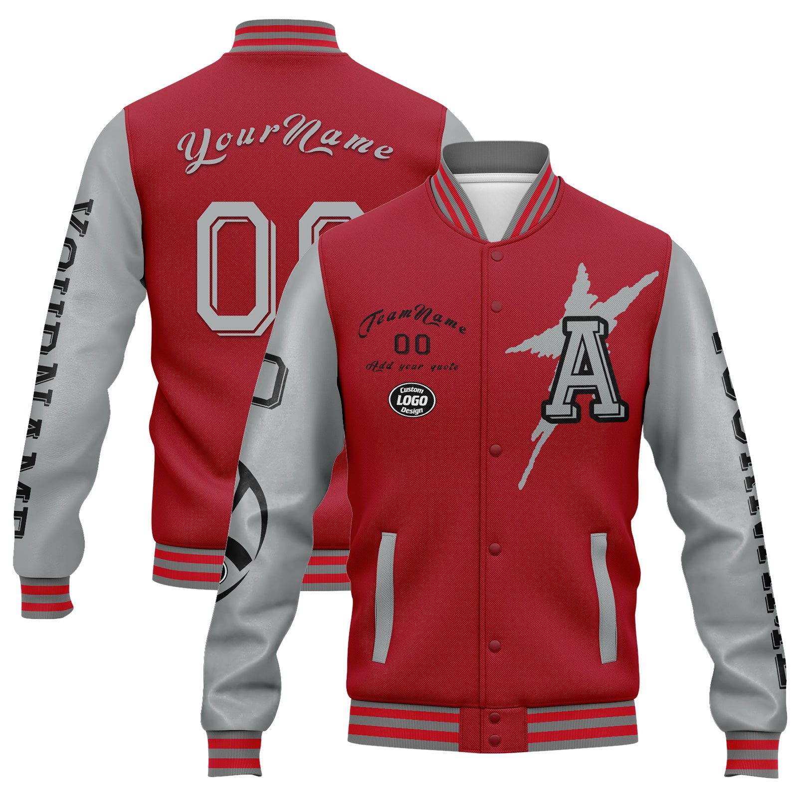Custom Red Gray Atlanta Jacket Bomber Full-Snap Varsity Letterman Personalized Jacket FZ005SX-D020290-3