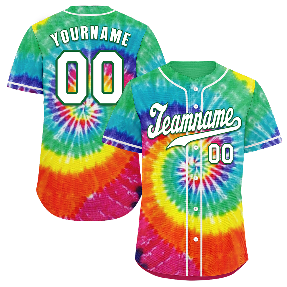 Custom Red Green Tie Dye White Authentic Baseball Jersey BSBJ0a-bc0fbea