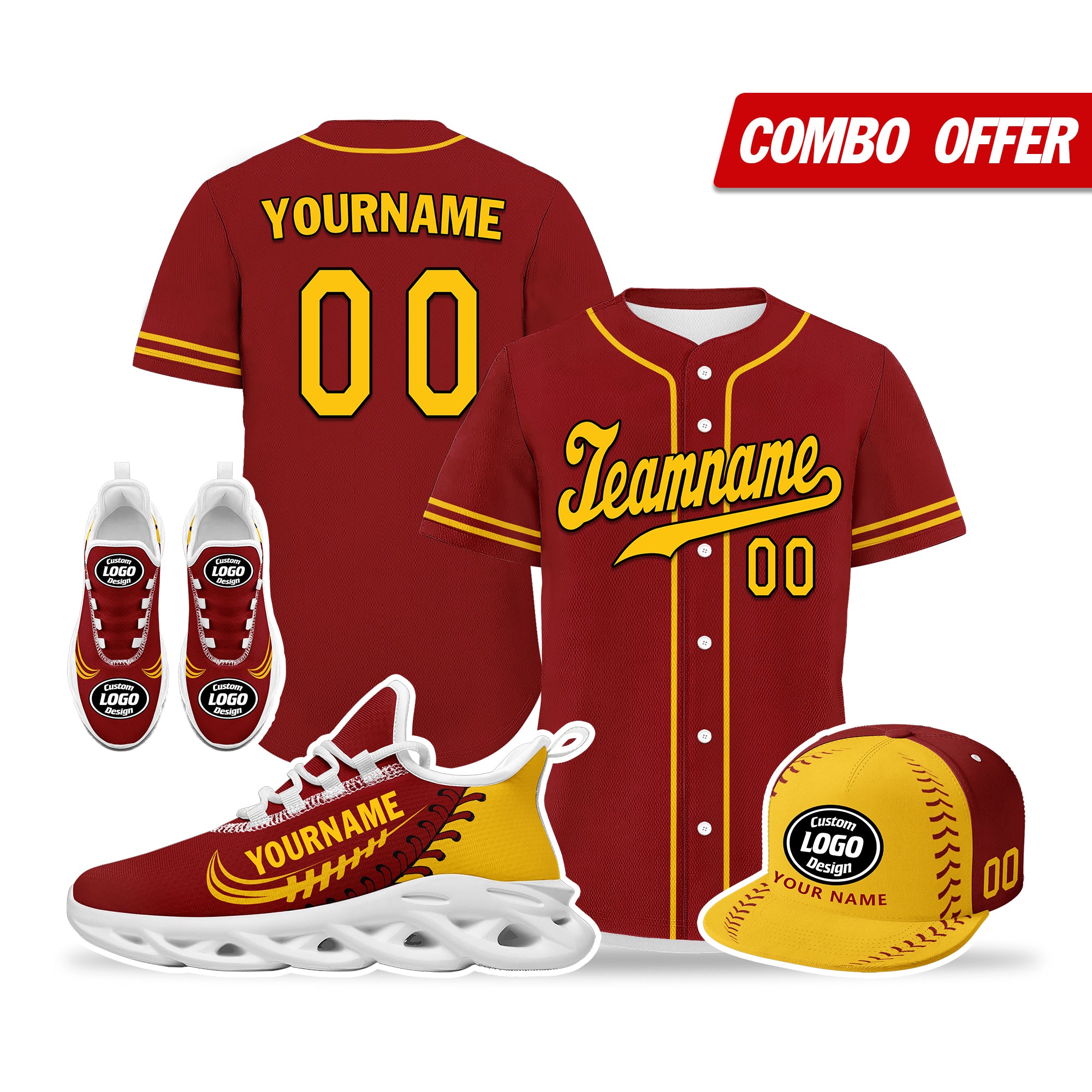 Elevate your fashion game with this exclusive combo deal featuring a custom hat, a pair of custom sneakers, and a custom jersey!