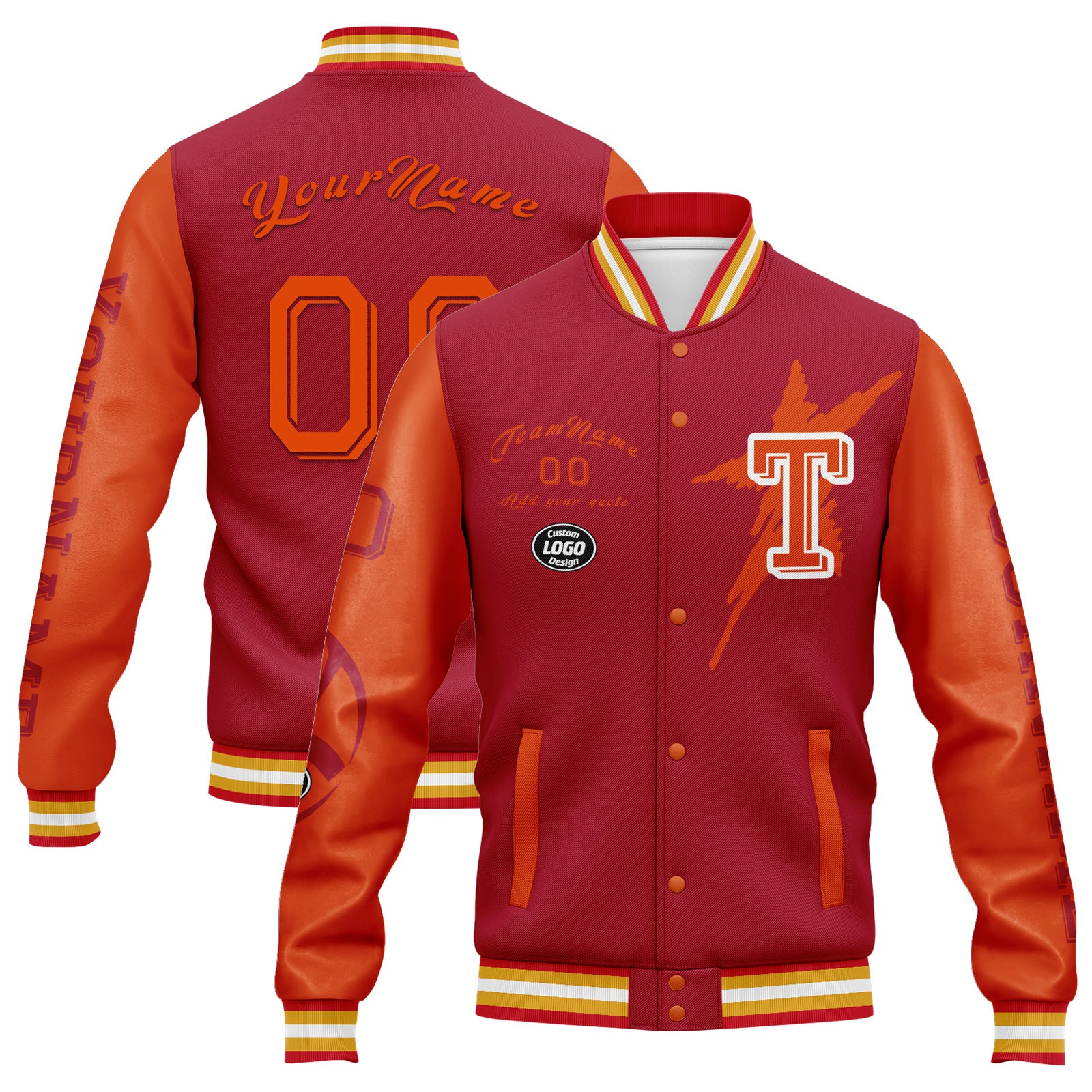 Custom Red Orange Tampa Bay Jacket Bomber Full-Snap Varsity Letterman Personalized Jacket FZ005SX-D020290-29