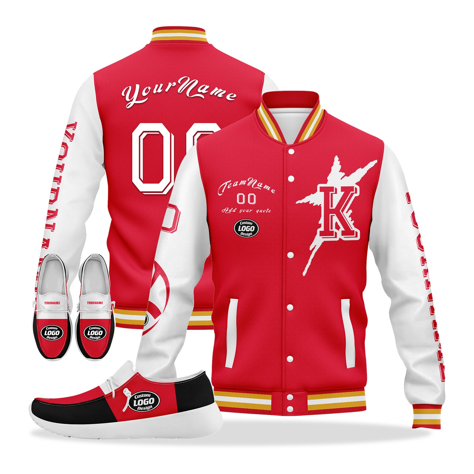 Custom Red White Black Kansas City Jacket and Sports Shoes Combo Offer Personalized Combo ZH-D020294-18