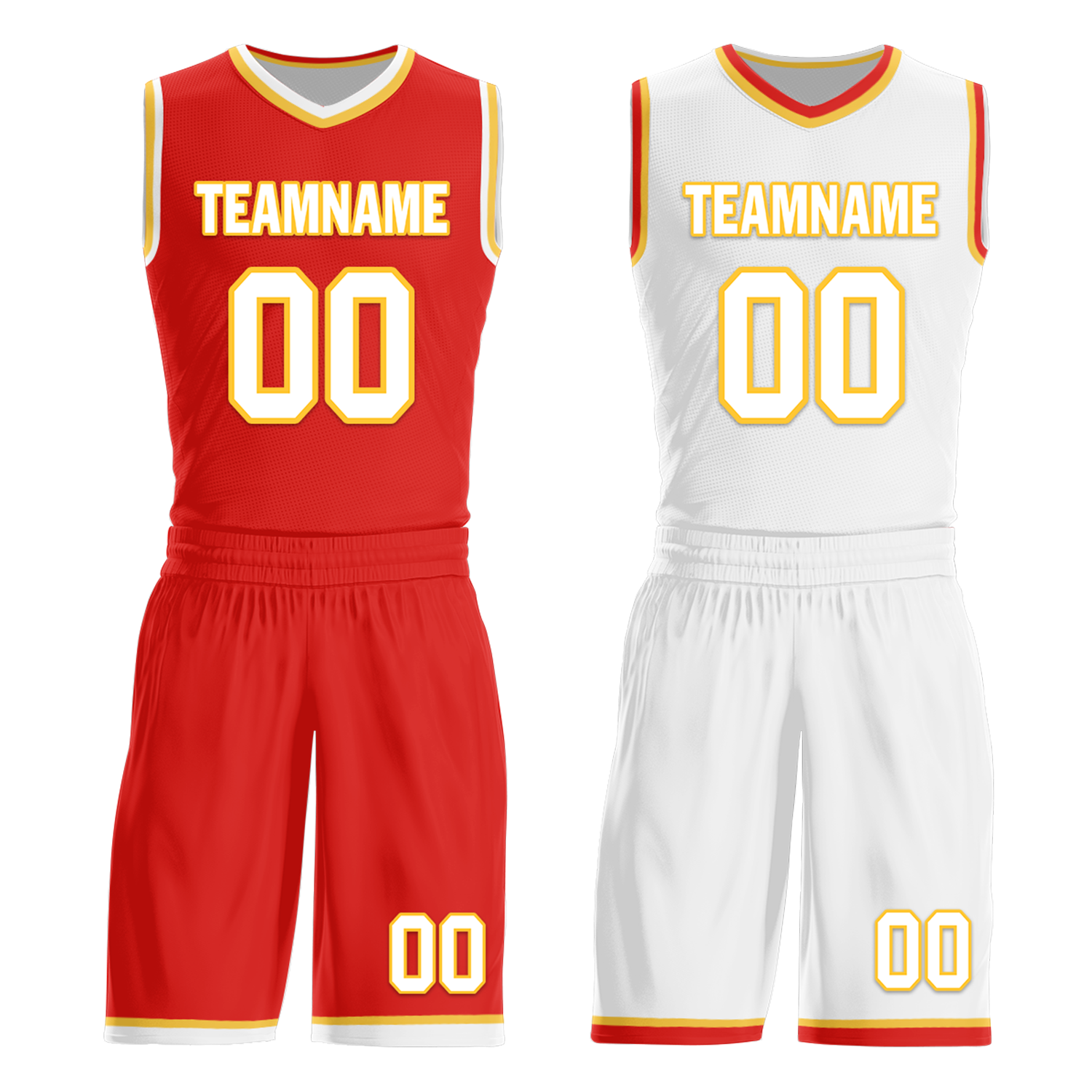 Custom Red White Classic Style Reversible Basketball Uniform Personalized COOLMAX BBJR-D017027