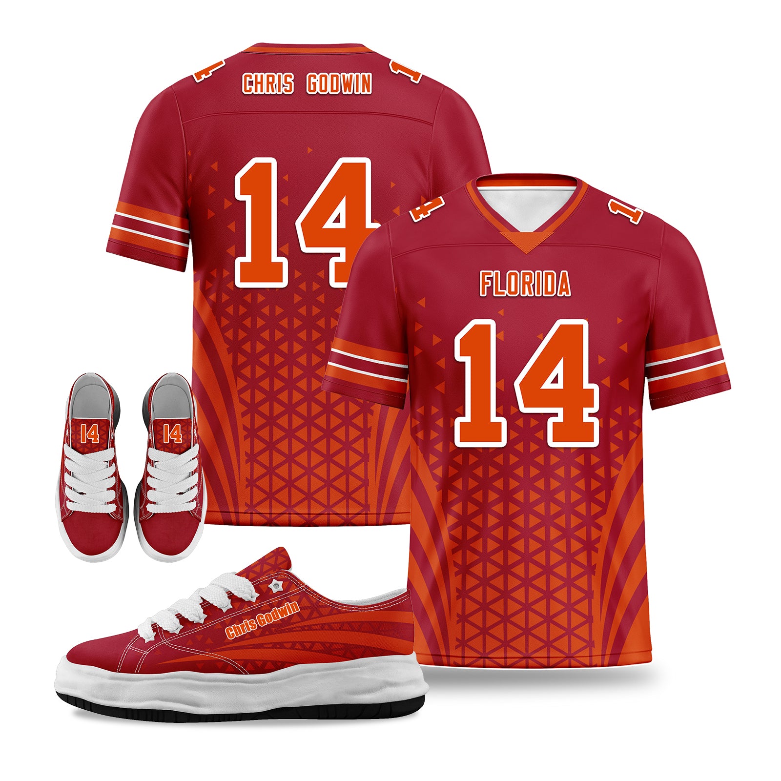 Custom Red White Florida Football Jersey and Sports Shoes Combo Offer Personalized Combo ZH-D023031-29
