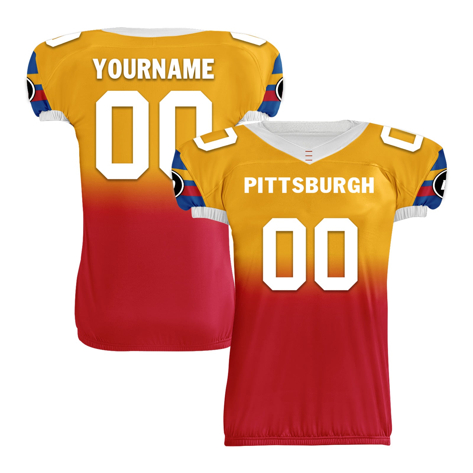 Custom Red Yellow Blue Fade Fashion Pittsburgh High-Performance American Football Jersey FBJ06-D020252-30