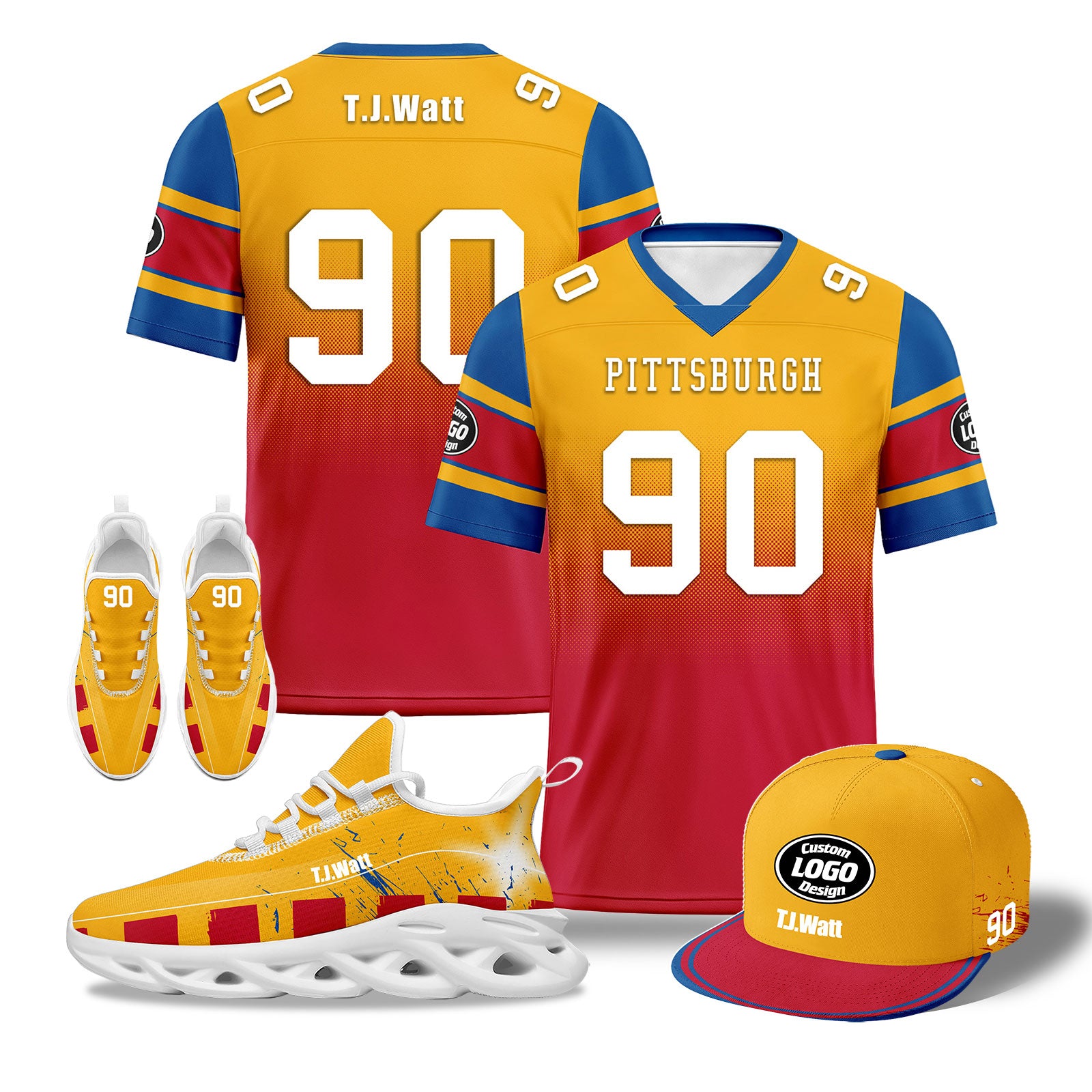 Custom Red Yellow Blue Pittsburgh Football MaxSoul Shoes and Hat Combo Offer Personalized Combo ZH-D020268-30