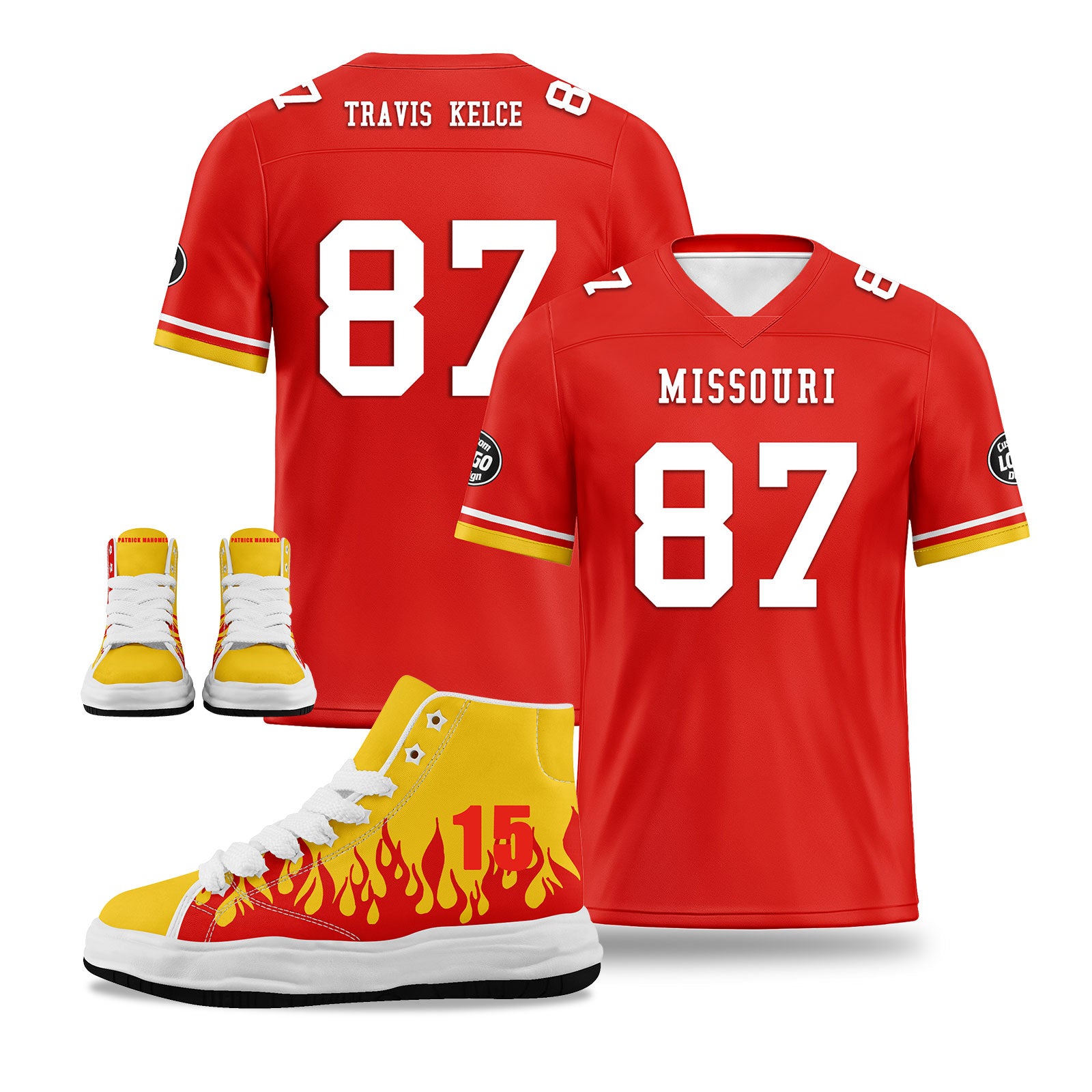 Custom Red Yellow Kansas City Football Jersey and Firesoul Sports Shoes Combo Offer Personalized Combo ZH-D020273-18