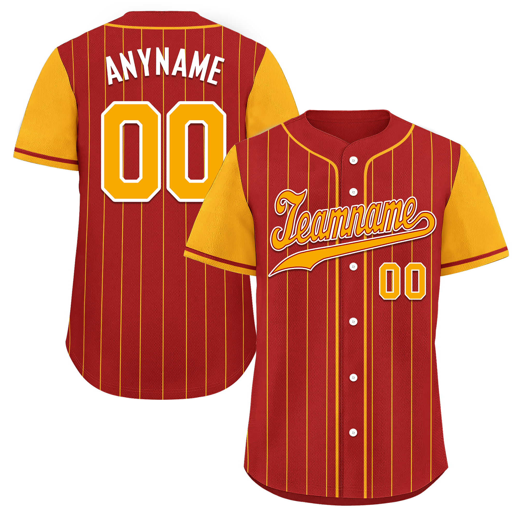 Custom Red Yellow Stripe Fashion Personalized Authentic Baseball Jersey BSBJ01-D017221