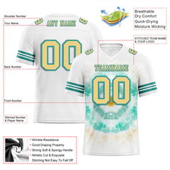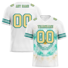 Custom White Aqua Tie Dye Yellow Personalized Authentic Football Jersey FBJ02-bc0fa78