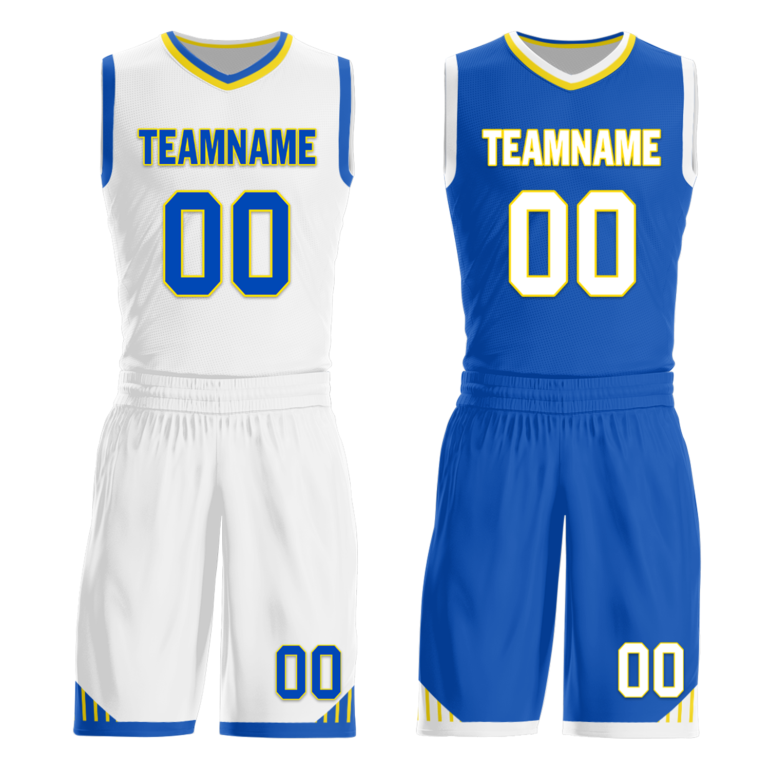 Custom White Blue Classic Style Reversible Basketball Uniform Personalized COOLMAX BBJR-D017004