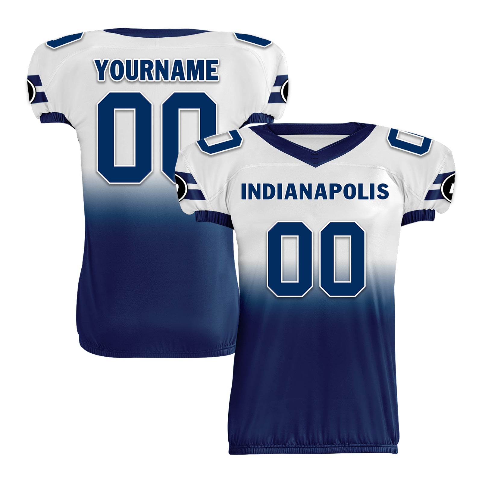 Custom White Blue Fade Fashion Indianapolis High-Performance American Football Jersey FBJ06-D020252-14