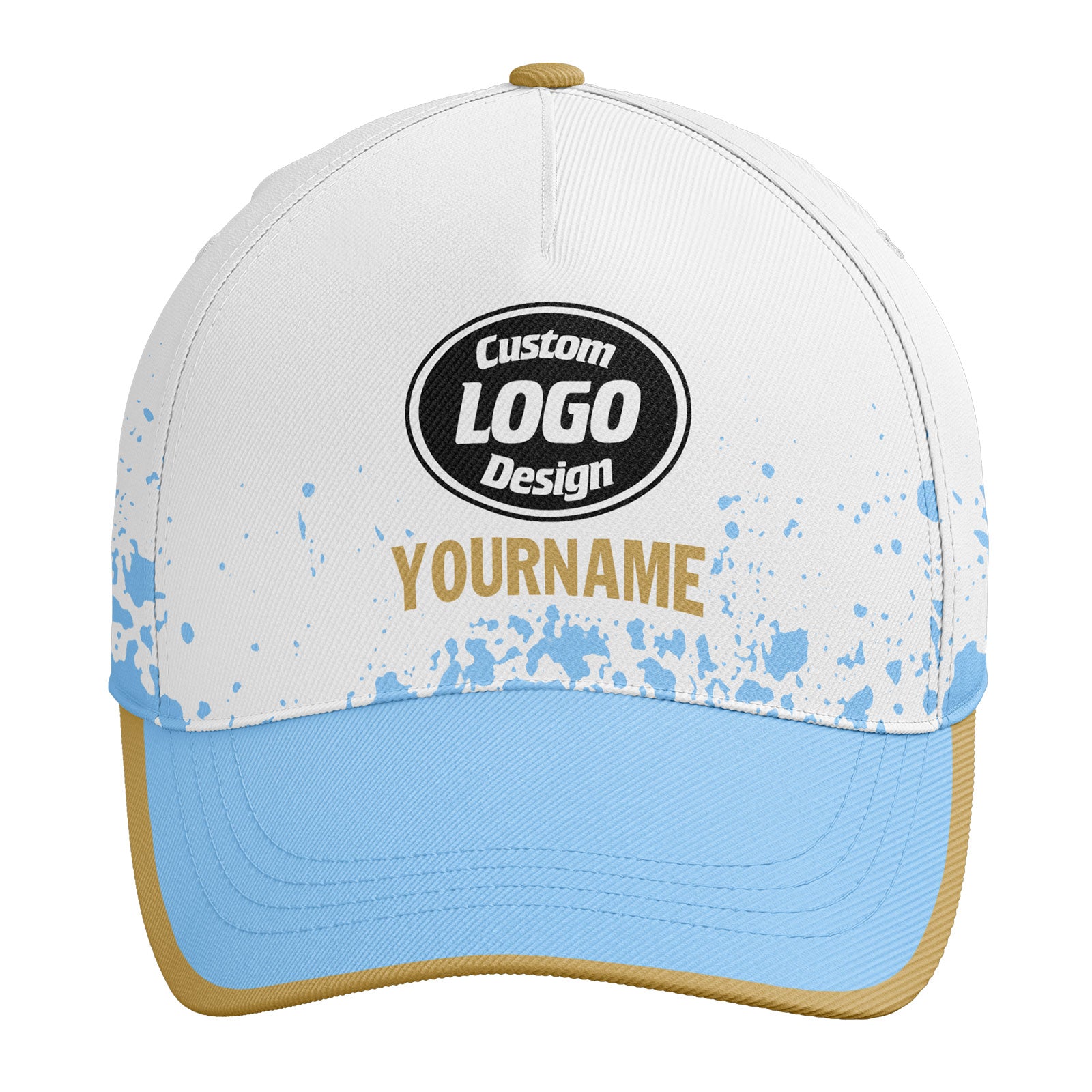Custom White Blue Hat Sport Design Cap Stitched Adjustable Personalized YW061-D020231-10