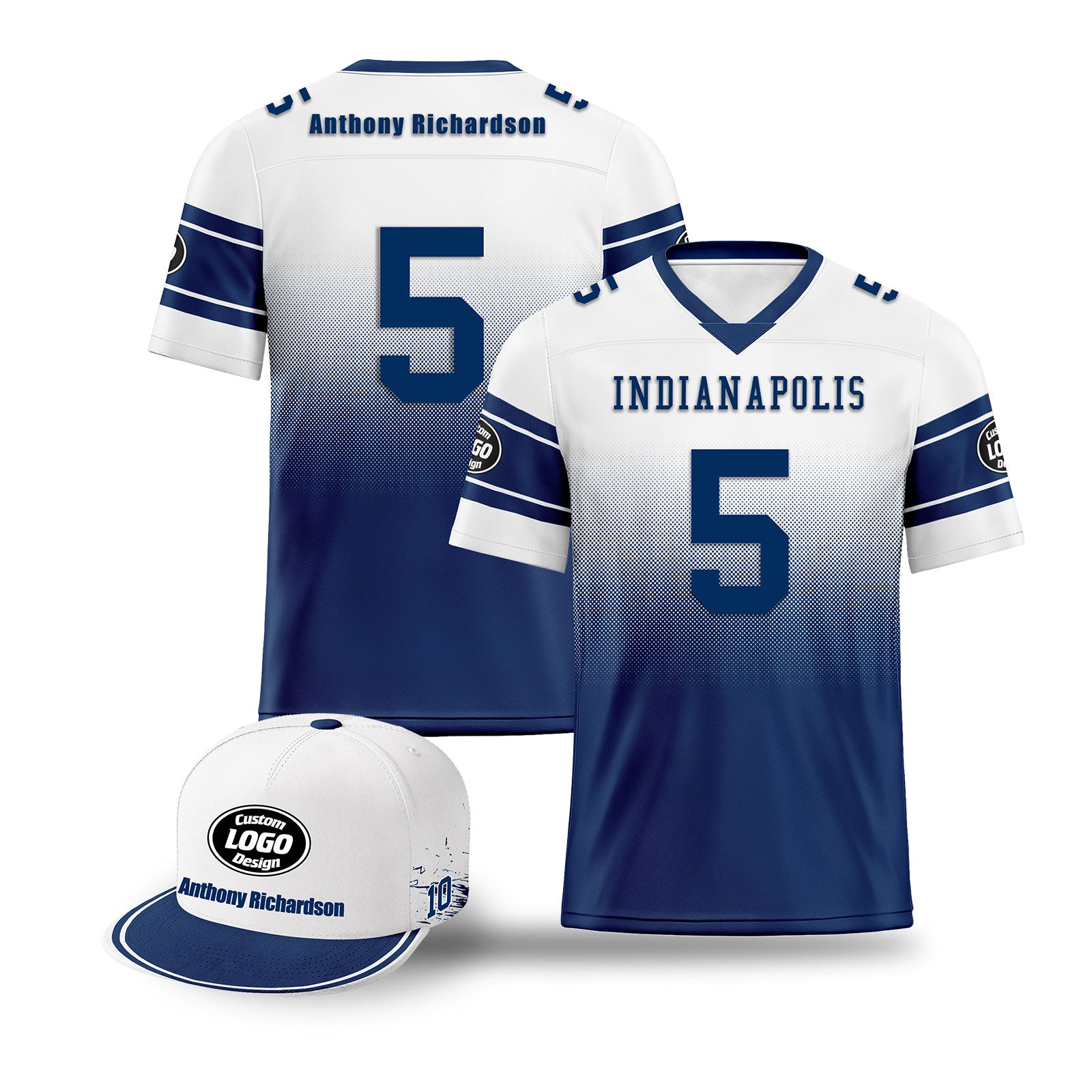 Custom White Blue Indianapolis Football Jersey and Hat Combo Offer Personalized Combo ZH-D020326-14