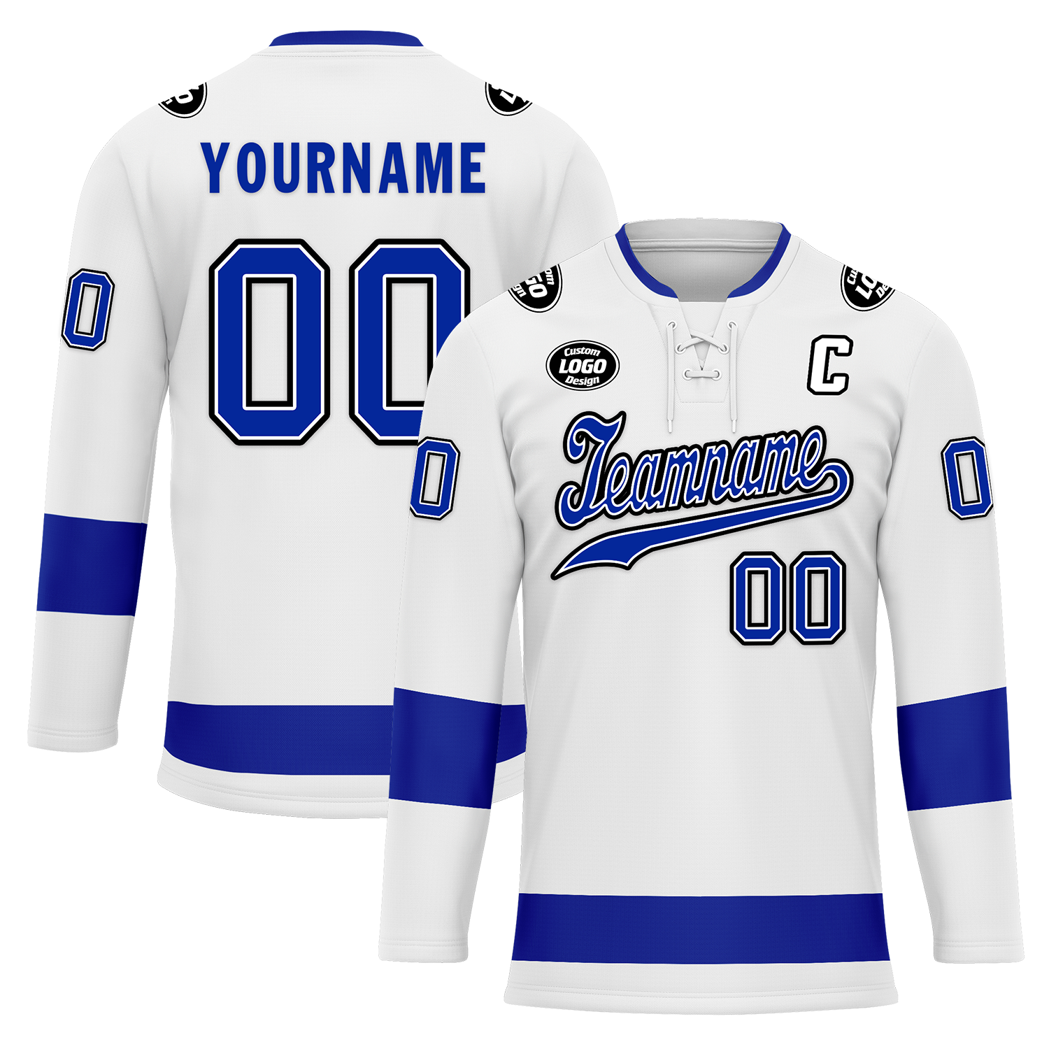 Custom White Blue Personalized Hockey Jersey HCKJ01-D0a70bb