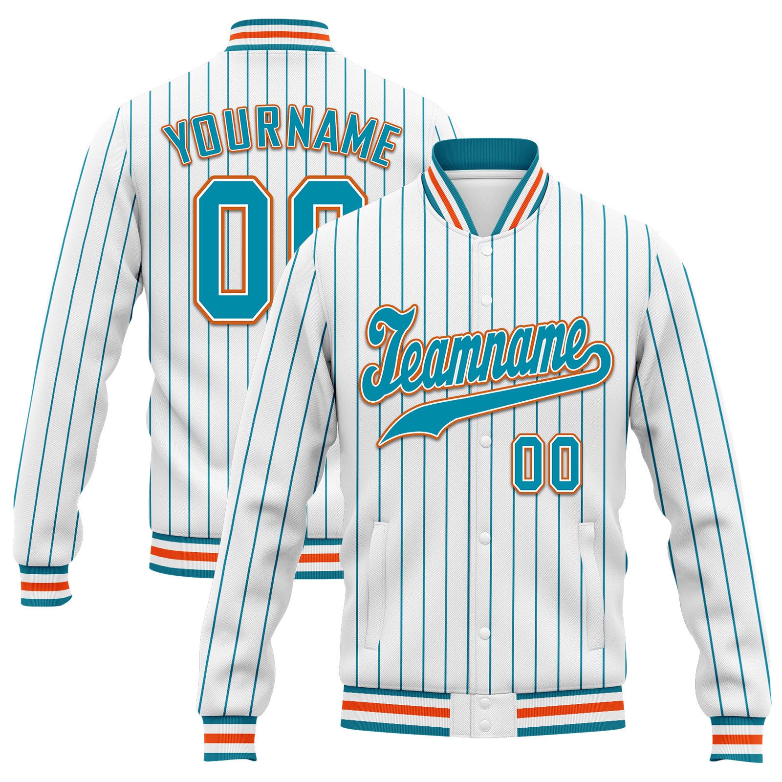 Custom White Blue Stripe Fashion Jacket Bomber Full-Snap Varsity Letterman Personalized Jacket FZ005-D020219-23