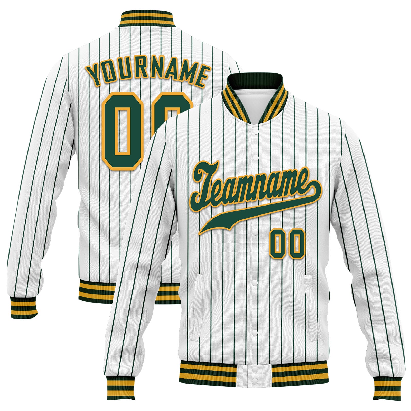 Custom White Forest Green Stripe Fashion Jacket Bomber Full-Snap Varsity Letterman Personalized Jacket FZ005-D020219-5