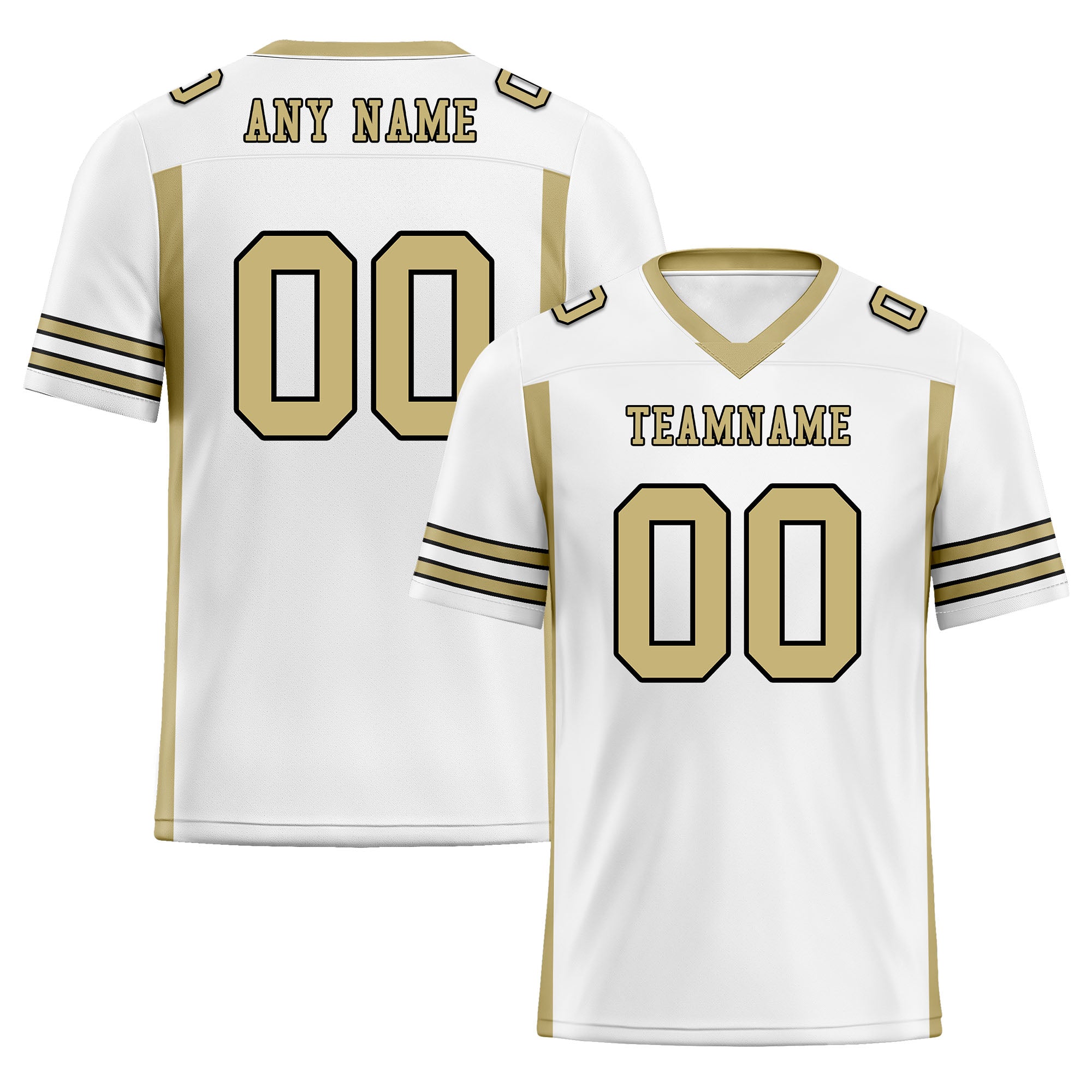 Custom White Gold Striped Sleeves Personalized Authentic Football Jersey FBJ02-D06069