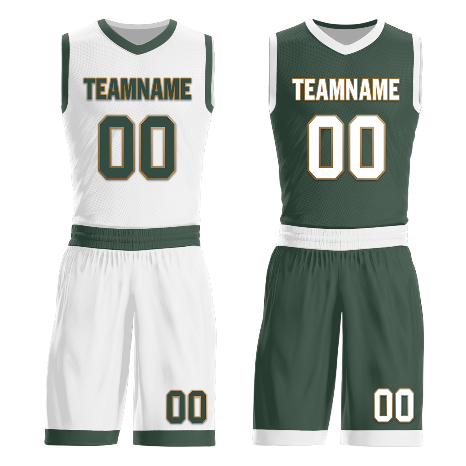 Custom White Green Classic Style Reversible Basketball Uniform Personalized COOLMAX BBJR-D017002