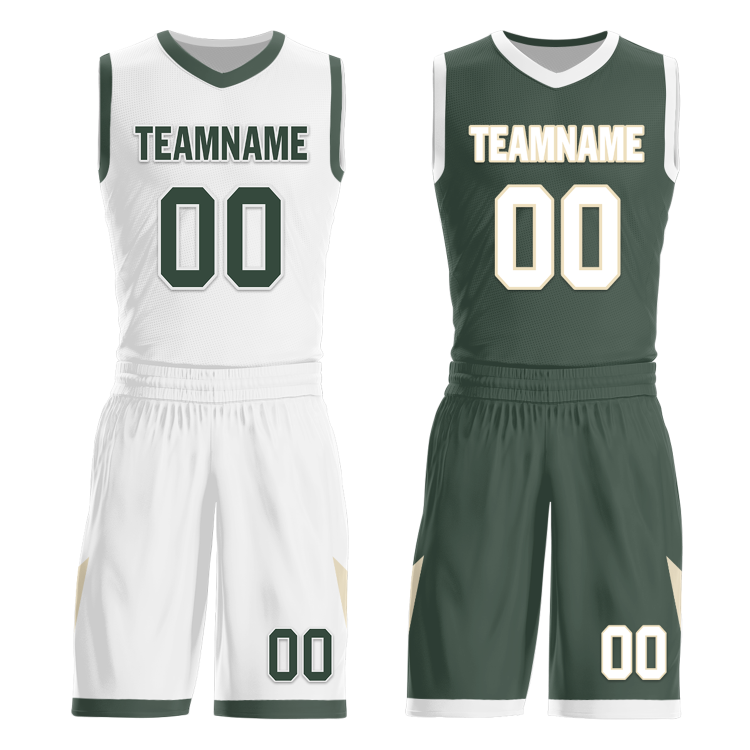 Custom White Green Classic Style Reversible Basketball Uniform Personalized COOLMAX BBJR-D017010
