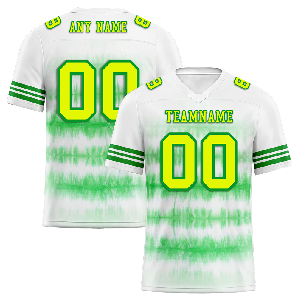 Custom White Green Tie Dye Yellow Personalized Authentic Football Jersey FBJ02-bc0fa8b