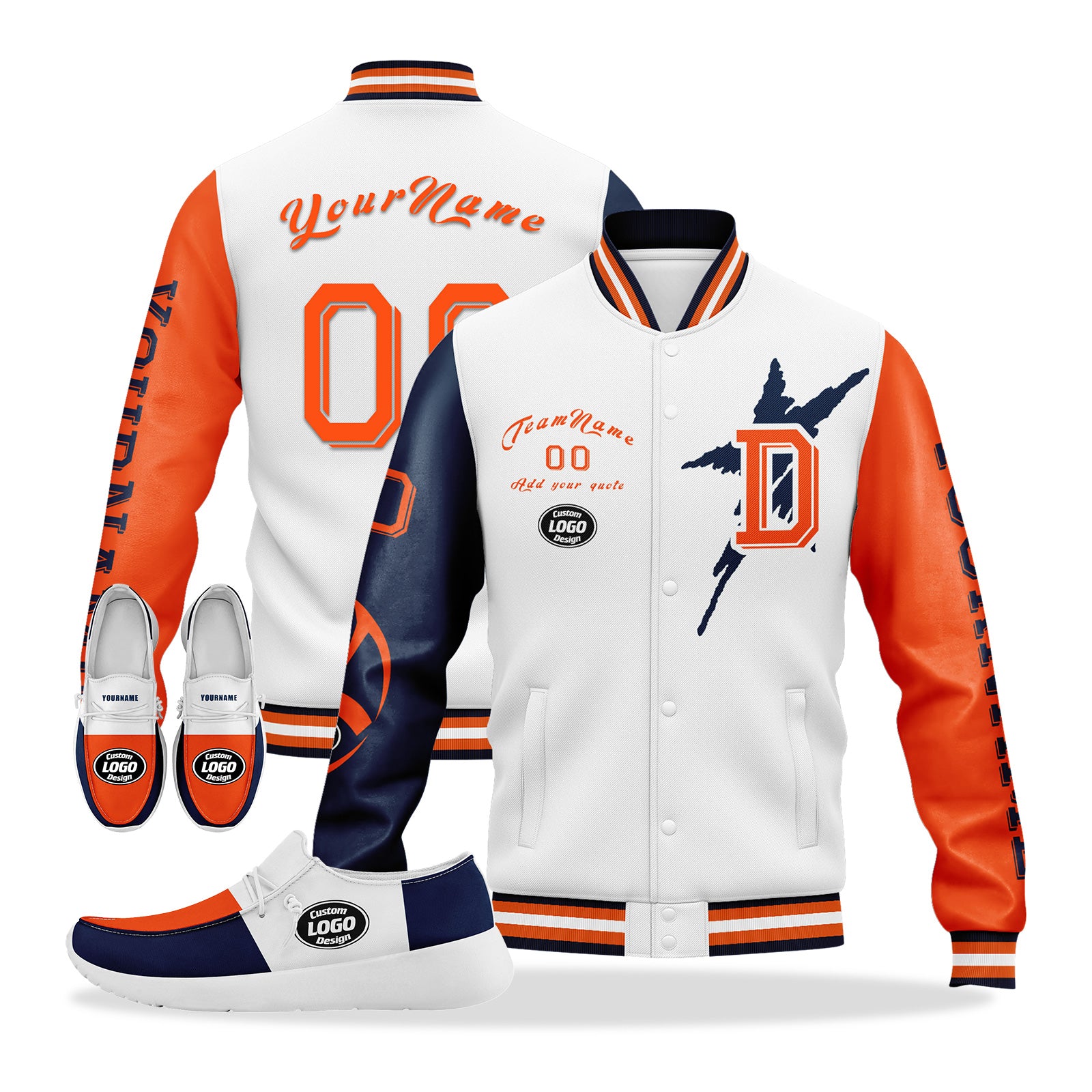 Custom White Orange Blue Denver Jacket and Sports Shoes Combo Offer Personalized Combo ZH-D020294-10