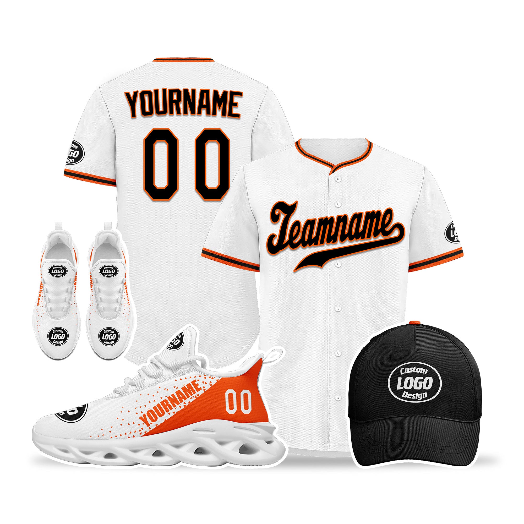 Elevate your fashion game with this exclusive combo deal featuring a custom hat, a pair of custom sneakers, and a custom jersey!